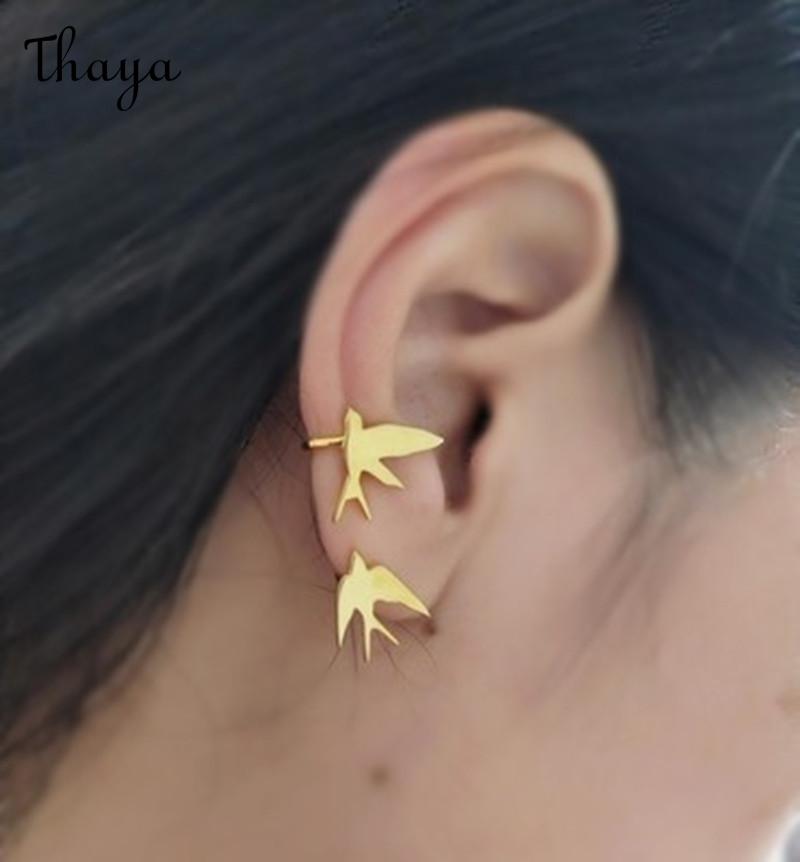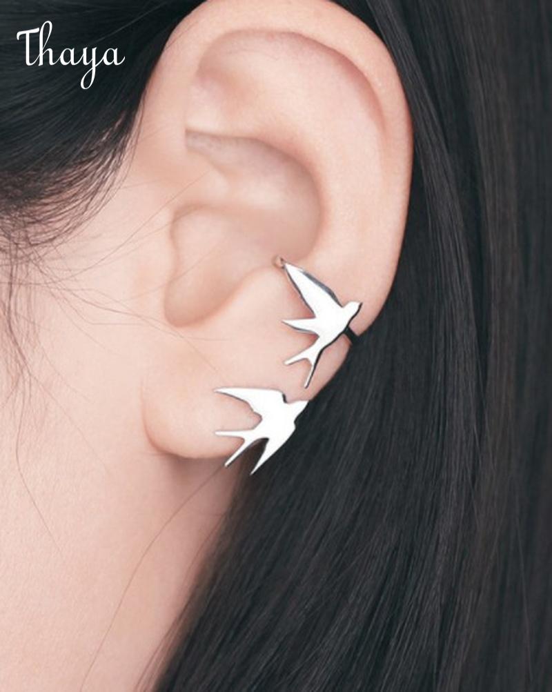 Elevate your style with these unique bird swallow ear cuffs. These delicate earrings feature charming bird designs, creating a whimsical and elegant look.