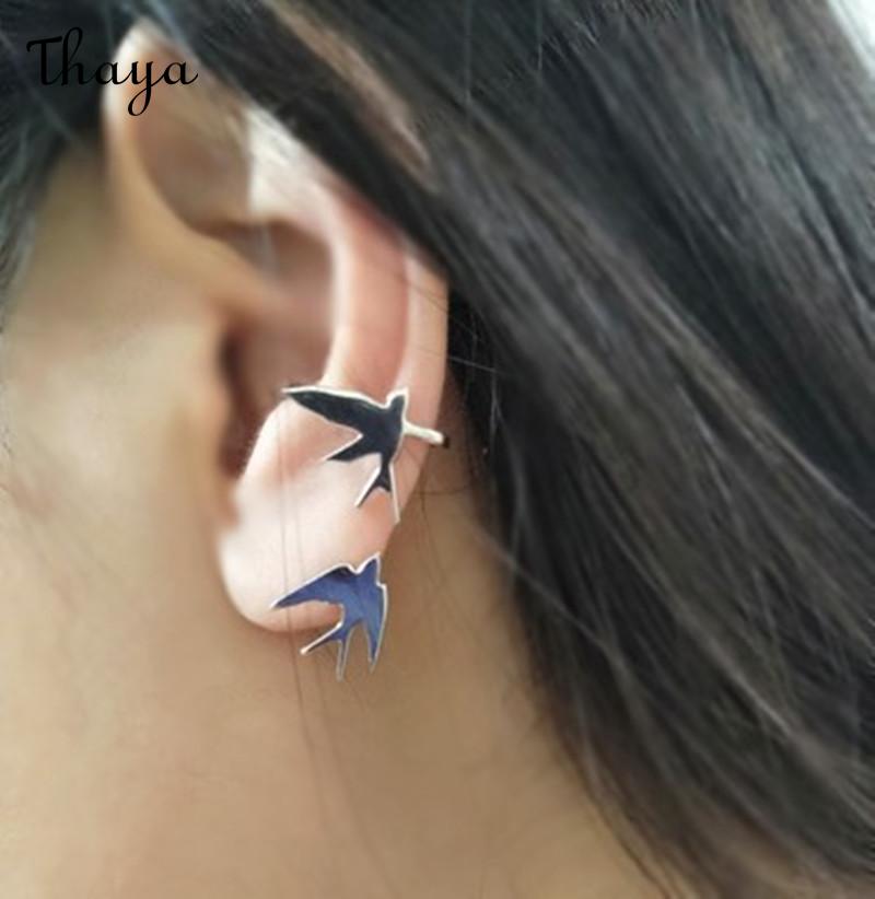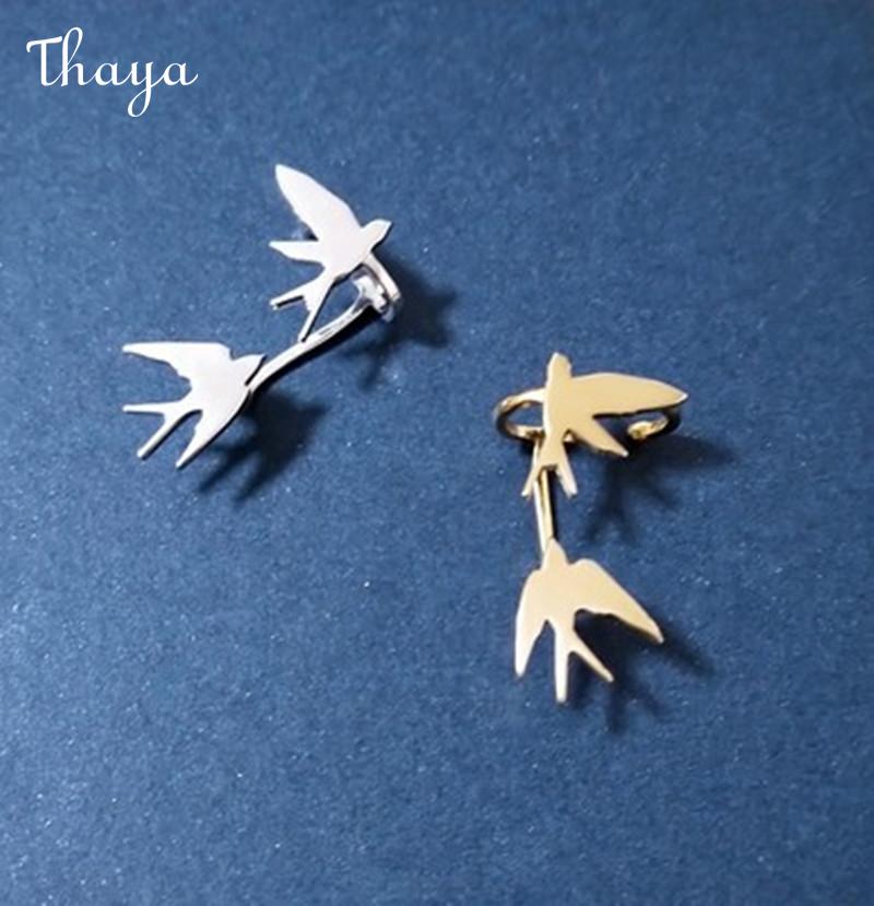 Thaya S925 Silver Bird Swallow Dangle Ear Cuff