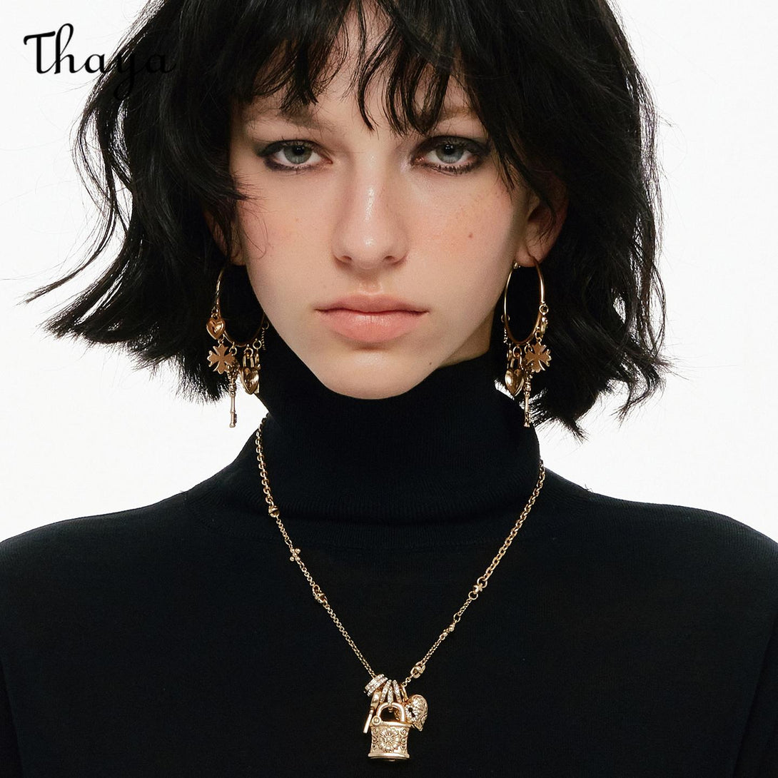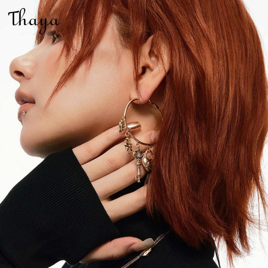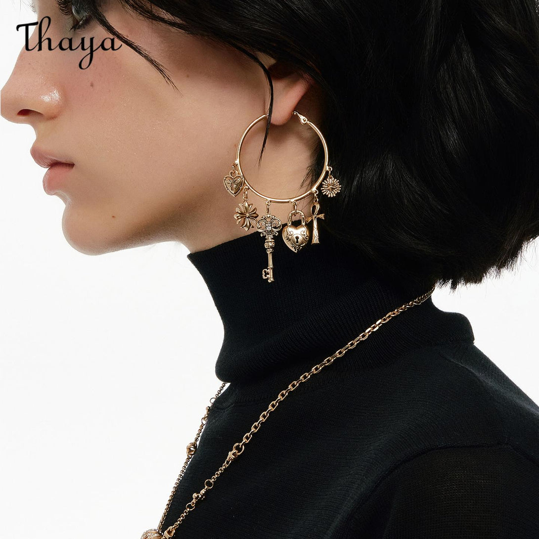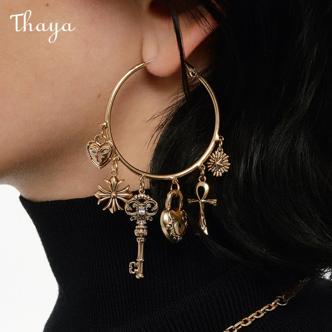 Thaya Love Lock Retro Distressed Key Hoop Earrings