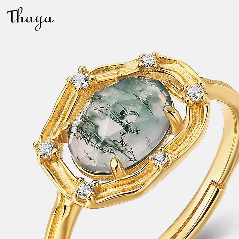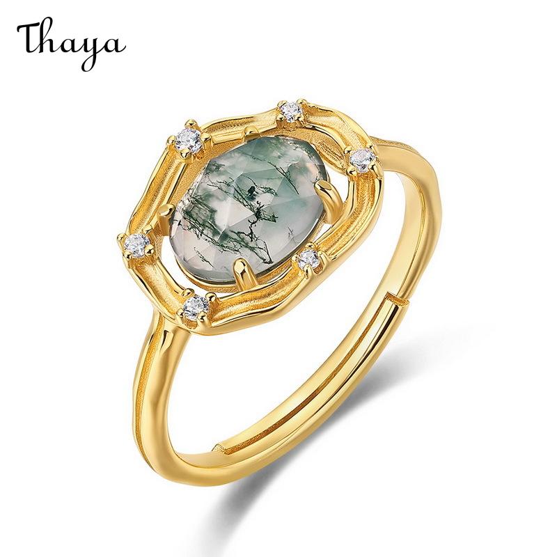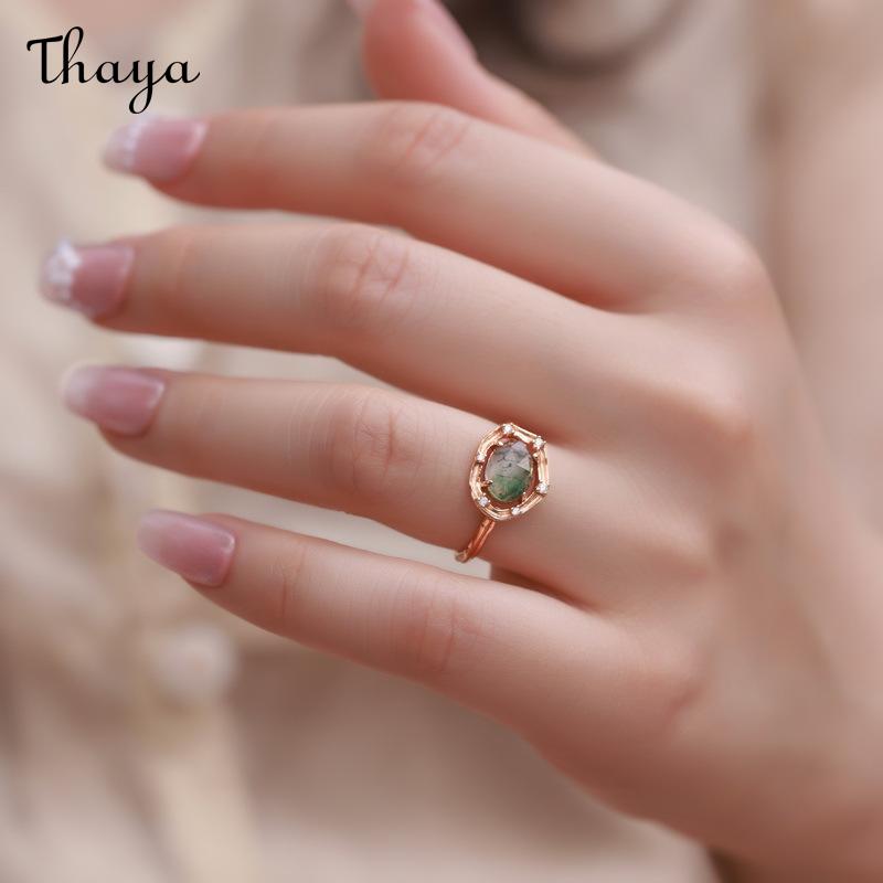 Thaya S925 Silver Green Moss Agate Zircon Ring