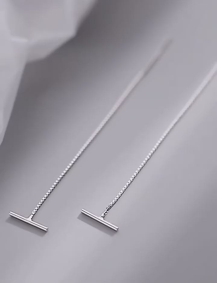 • Design: Features a small bar at the ear with a delicate, straight chain gracefully hanging below.