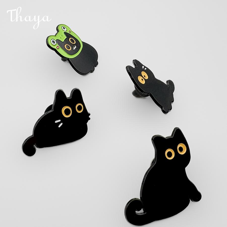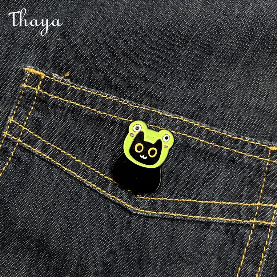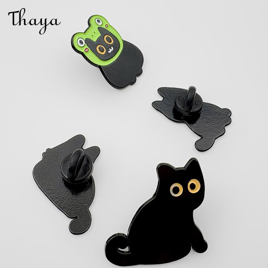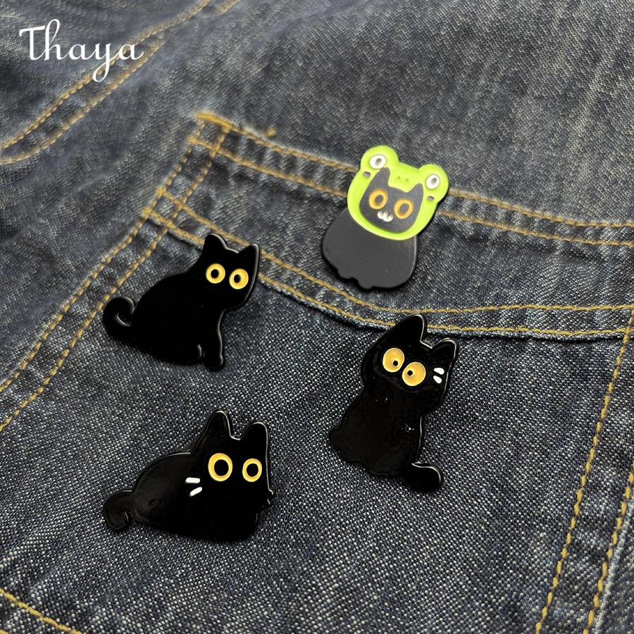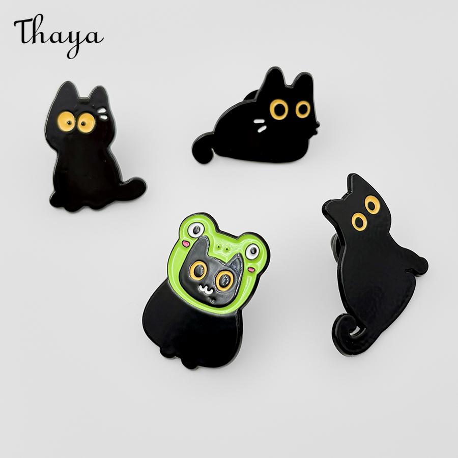 Add a touch of whimsy to your outfit with this adorable enamel pin set featuring black cat designs. Each pin showcases a unique pose and expression, including one cat dressed in a frog costume! Perfect for cat lovers and anyone who enjoys quirky accessories.