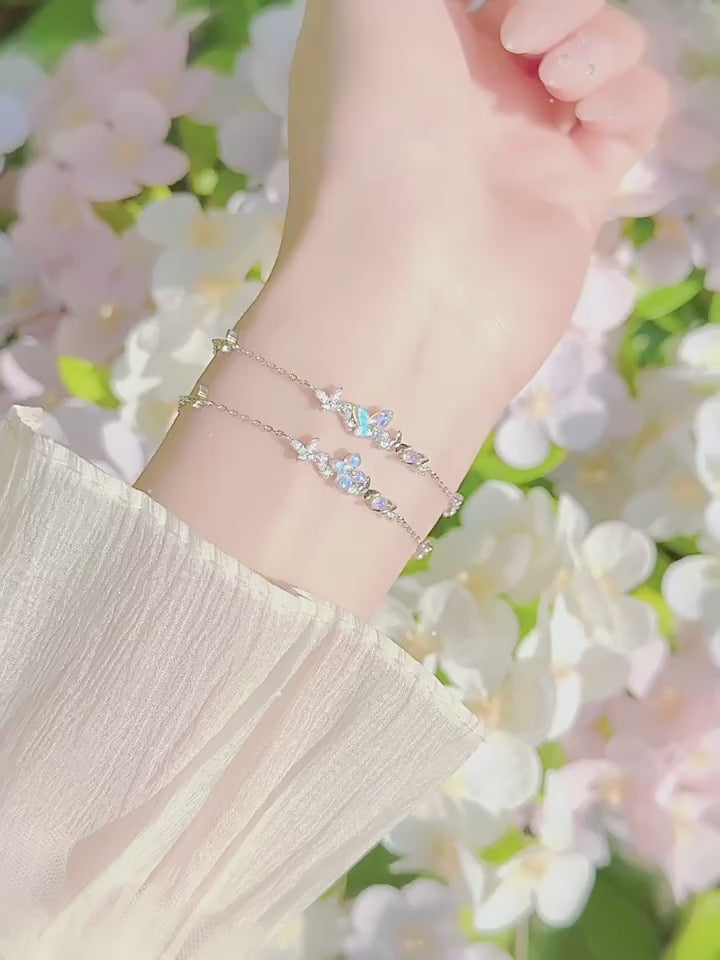 Add a touch of whimsy to your style with this delicate dancing butterfly bracelet. Its ethereal design and shimmering details make it a perfect accessory for any occasion.