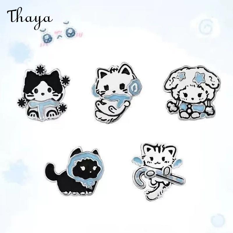 Thaya 925 Silver Cute Winter Cat Enamel Charms Earrings Set(Mix & Match As You Like)