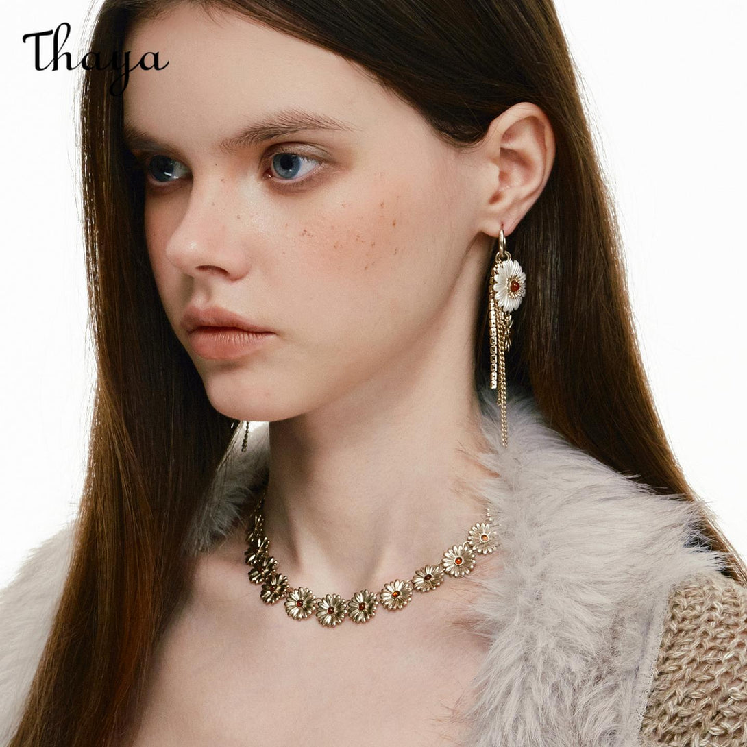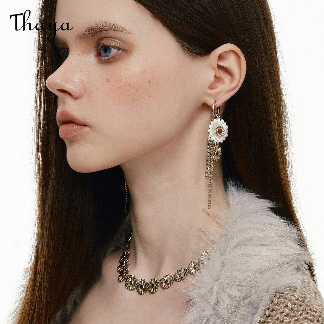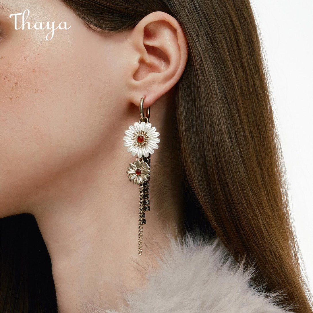 Thaya Daisy Tassel Two-way Long earrings