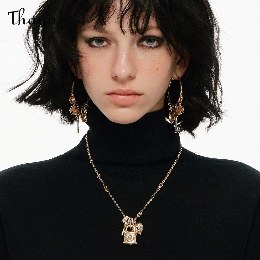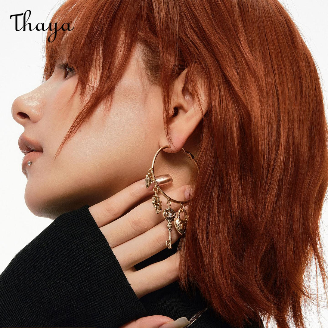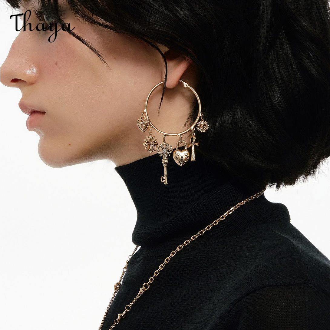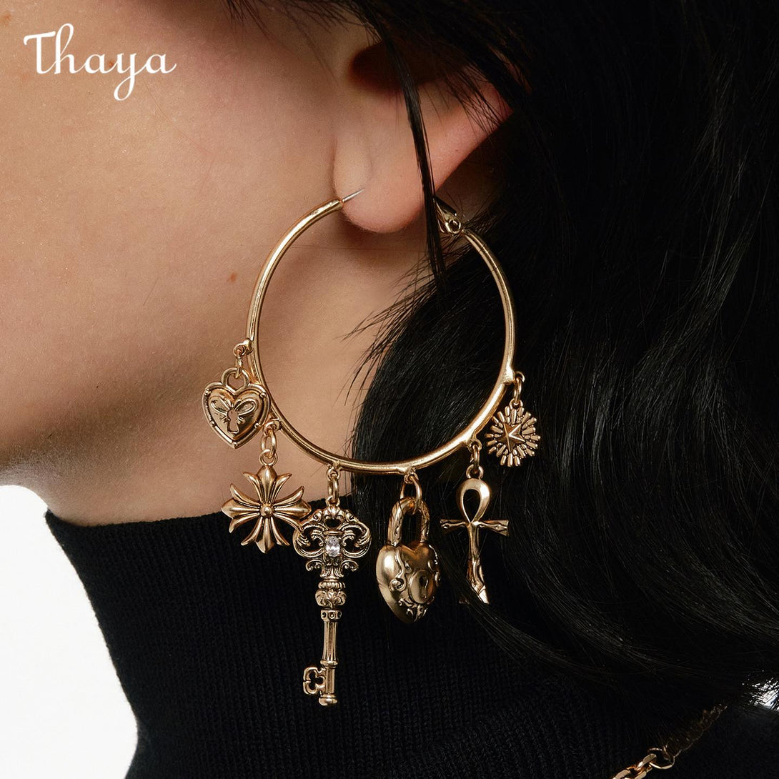 Thaya Love Lock Core Retro Key Heart Large Hoop Earrings