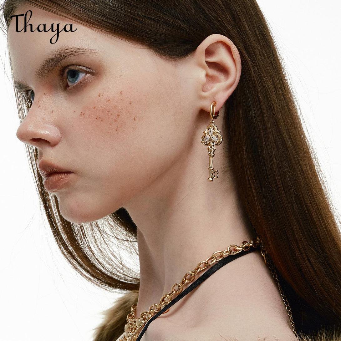 Thaya Love Lock Core Retro Embossed Key Earrings