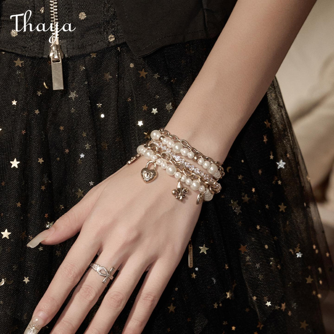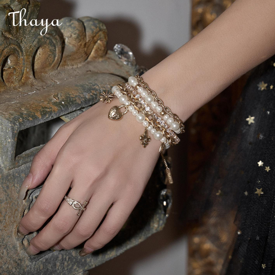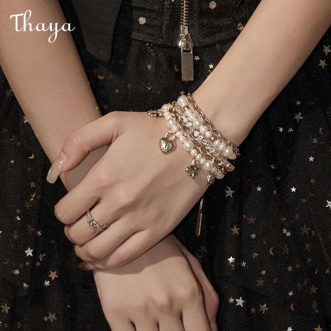 Thaya Love Lock Core Pearl Heart Multi-layer Stackable Bracelet