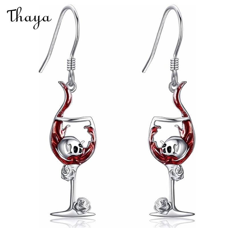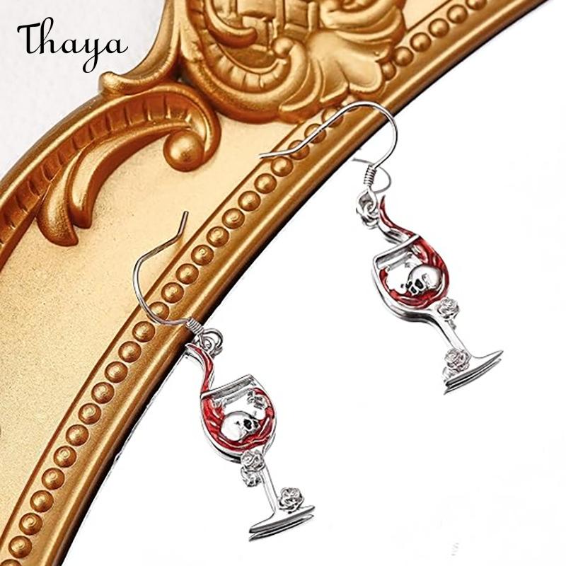 • Design: Wine glass-shaped charms with a skull inside, wine-red colored details, and a rose design at the base.