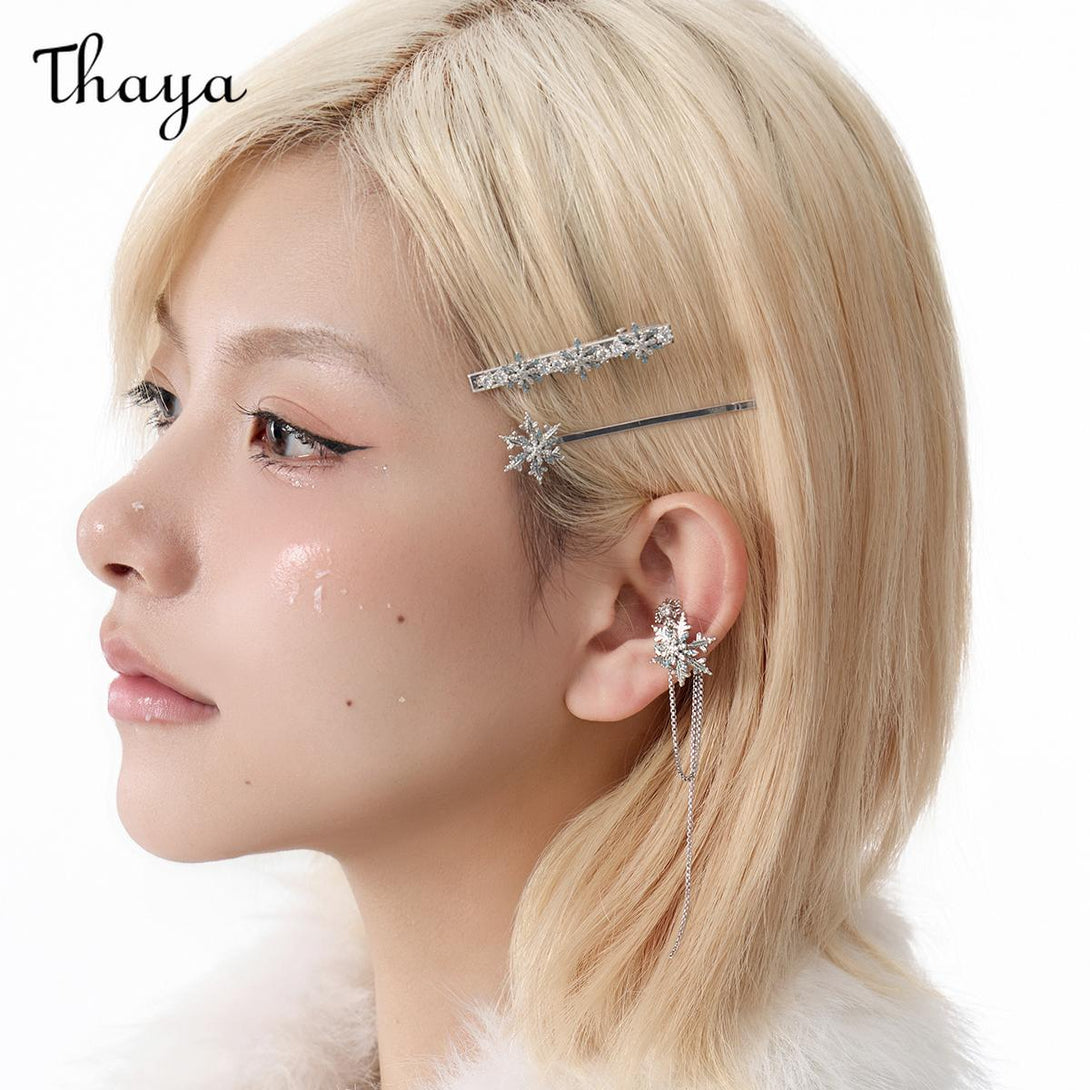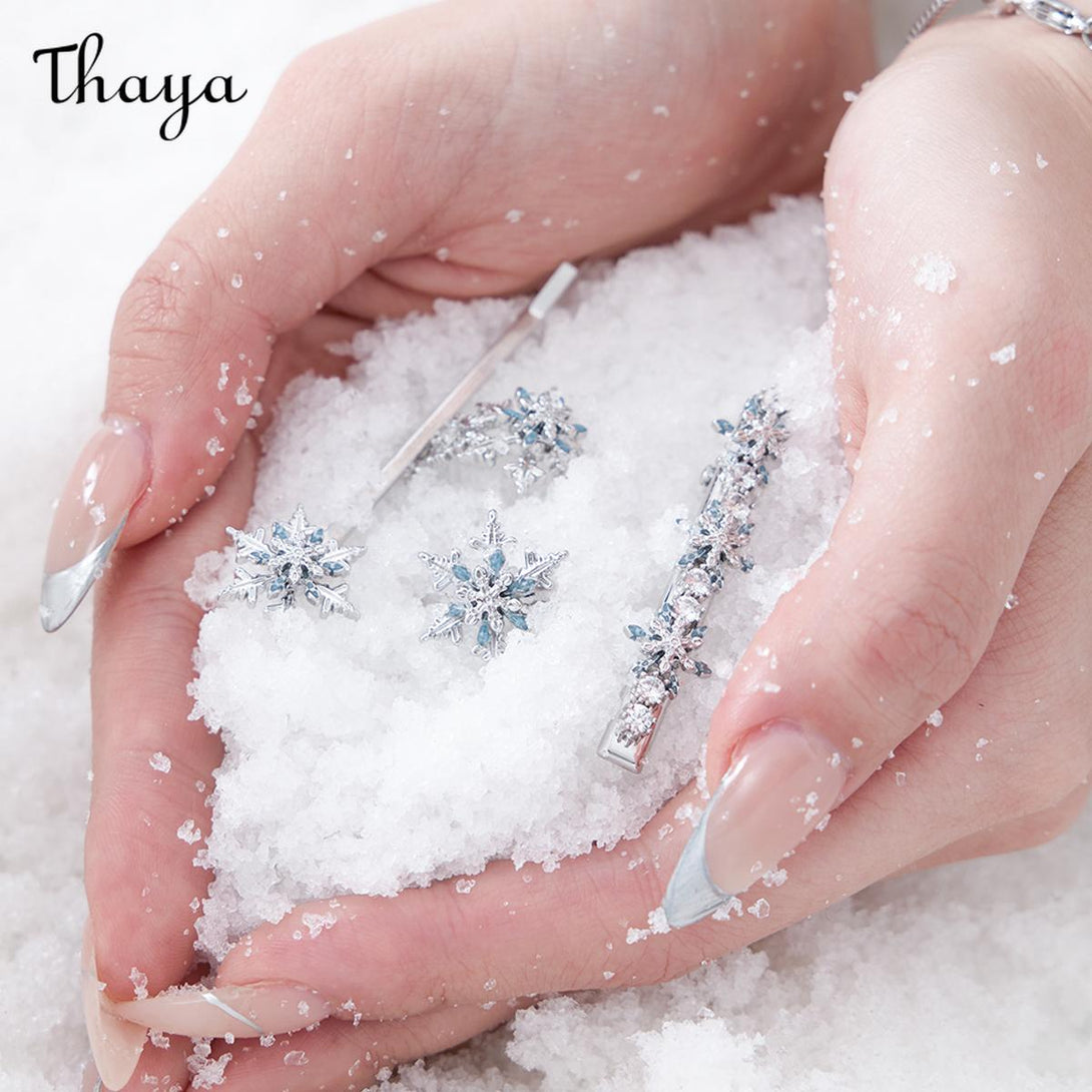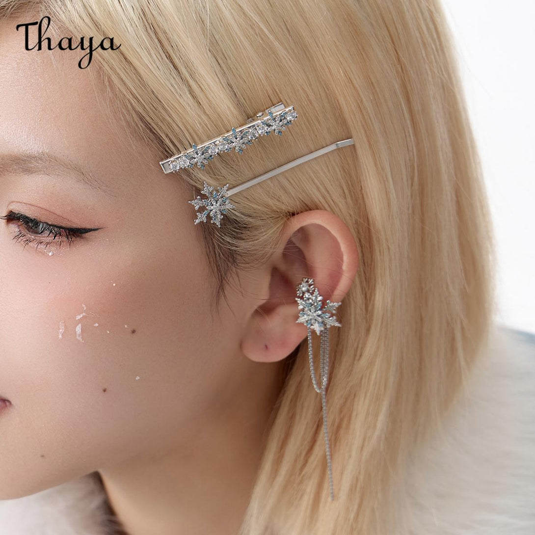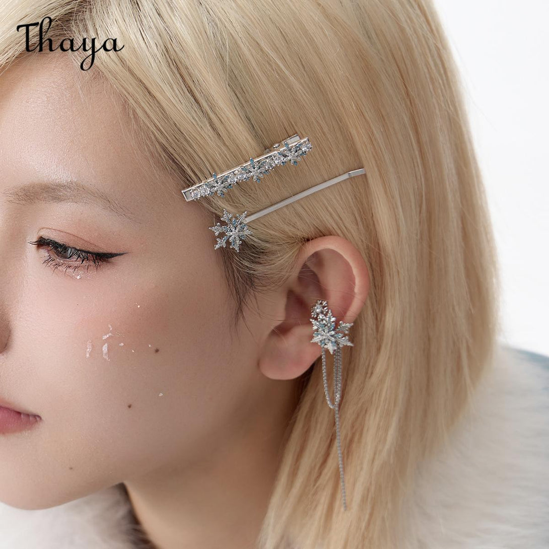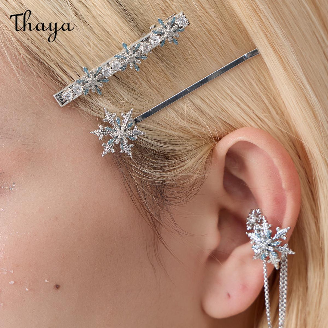 Hairpins: Includes two elegant hairpins, one adorned with a single snowflake and the other with a sparkling row of snowflake-inspired accents.