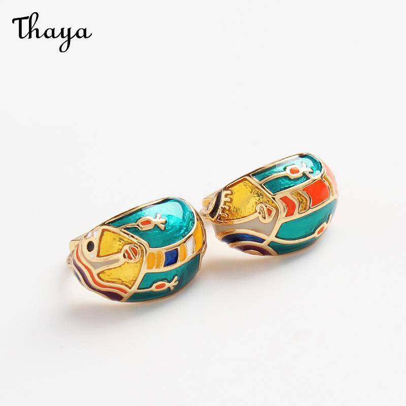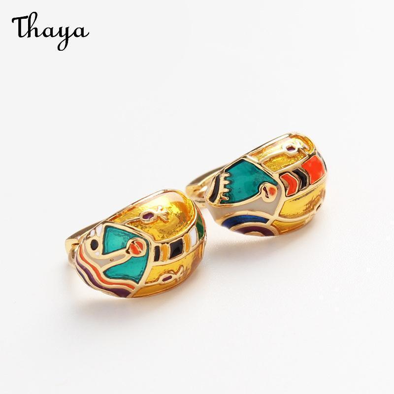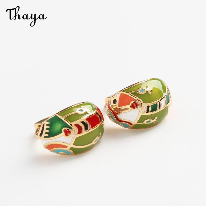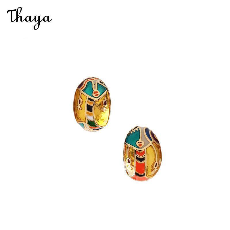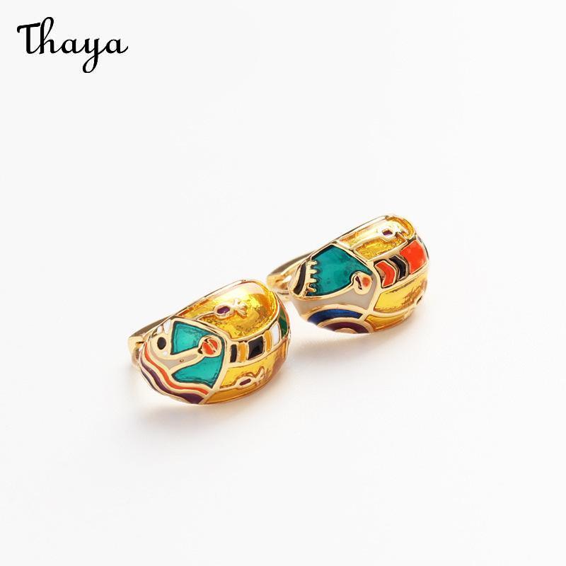 Thaya 18K Gold-Filled Enamel Drop Glaze Abstract Art Asymmetrical Earrings