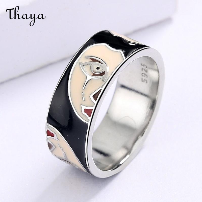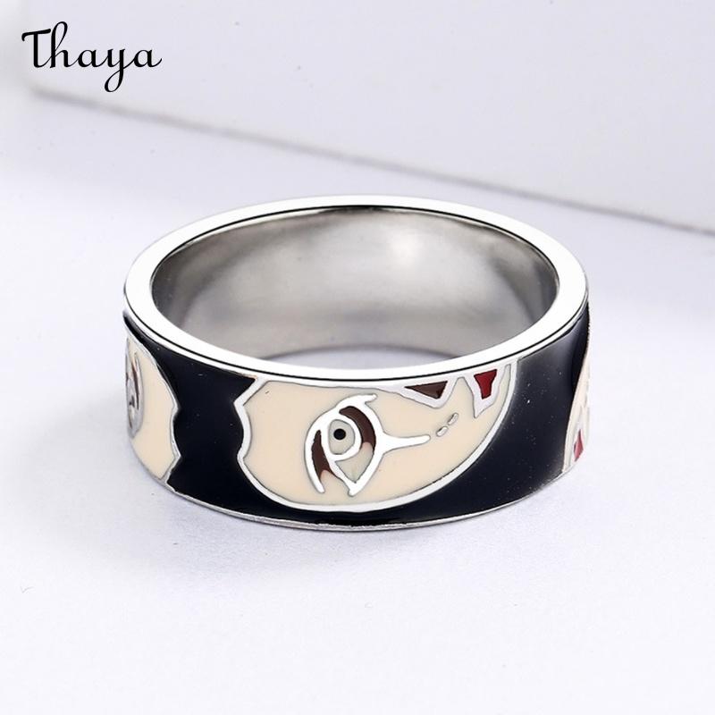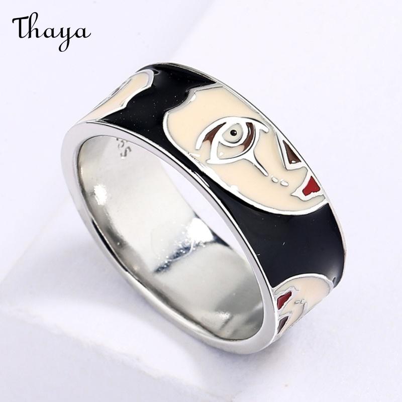 This unique ring features an artistic portrait design, adding a touch of contemporary flair to your look. The enamel detailing brings the abstract face to life, set against a sleek band.