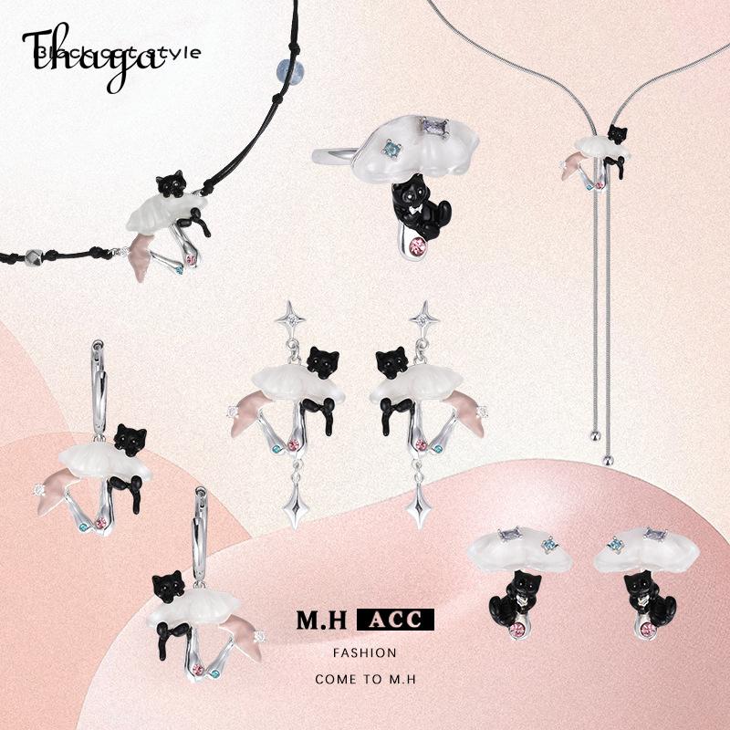 • Design: The set includes rings, earrings, necklaces and bracelets,each adorned with a charming black cat perched beneath a mushroom.