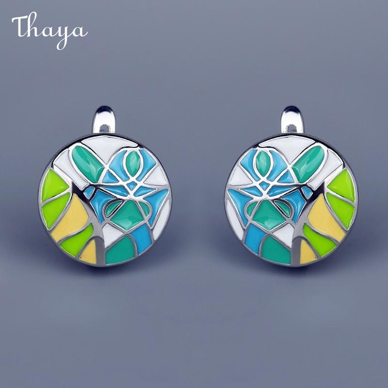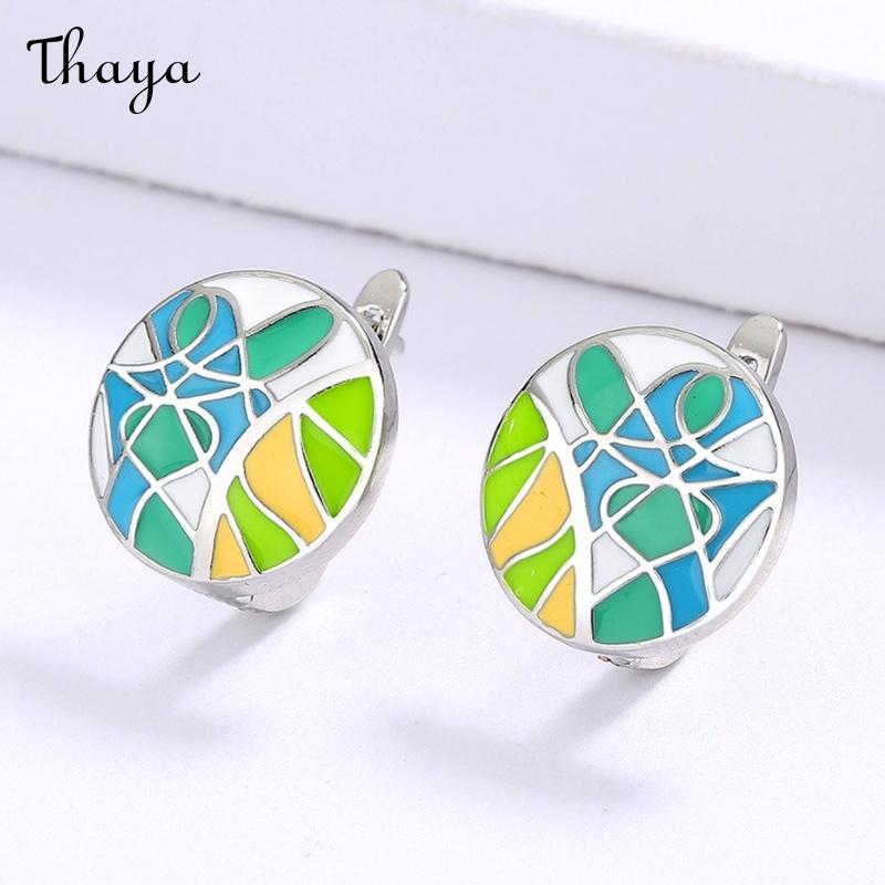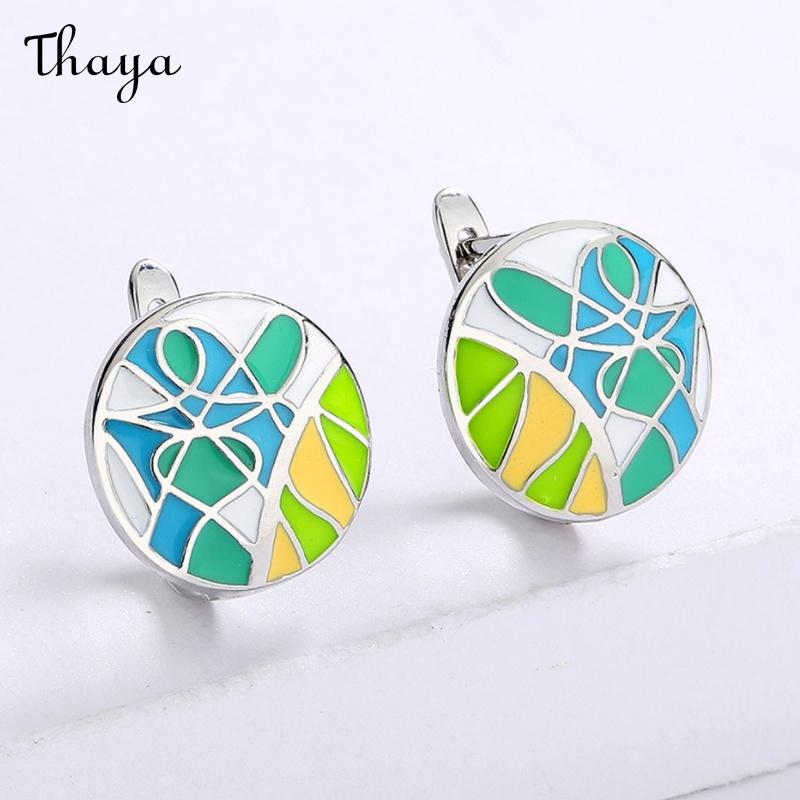 These eye-catching earrings feature a captivating round design. They're decorated with geometric patterns in various colors. The patterns and colors create a modern, artistic look.