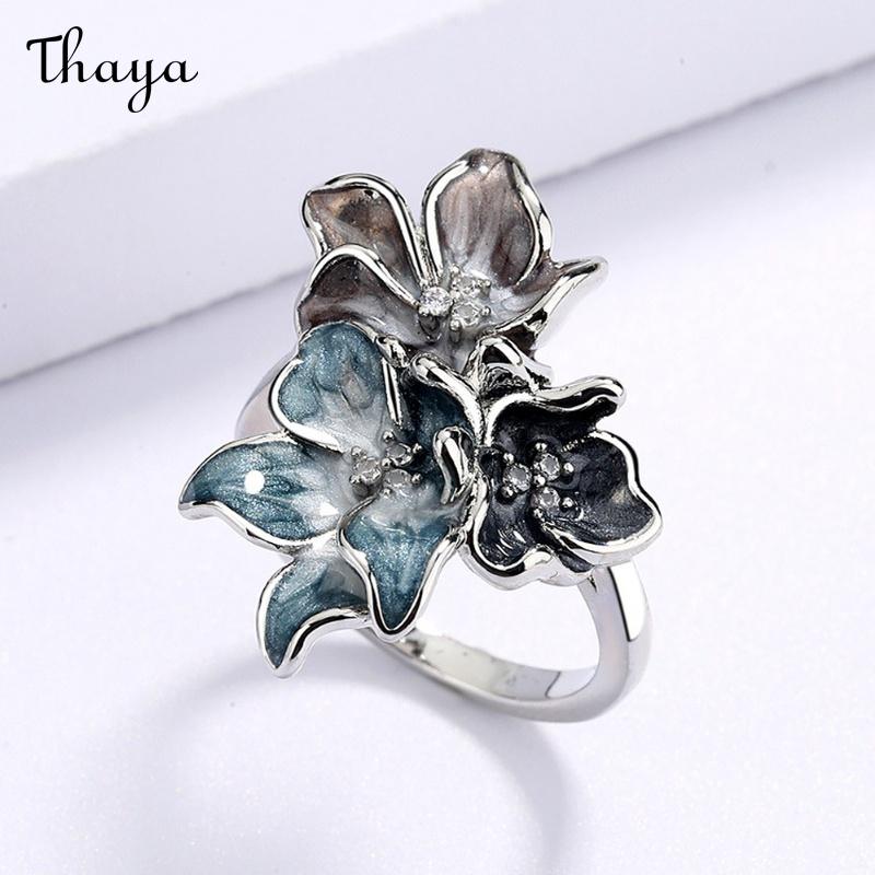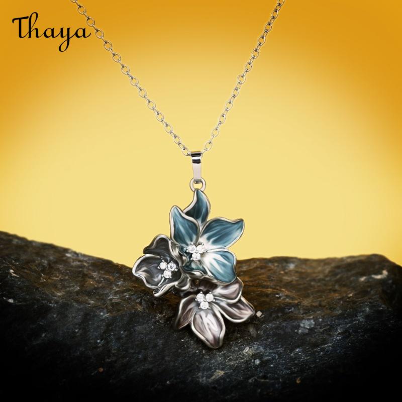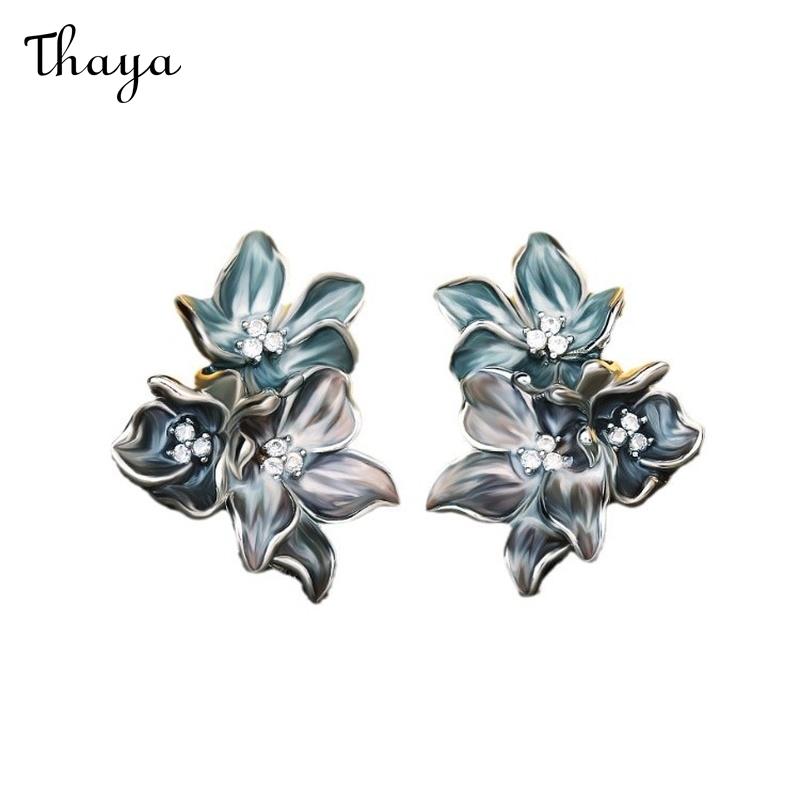 Thaya Elegant Enamel Blue Flower Jewelry Set