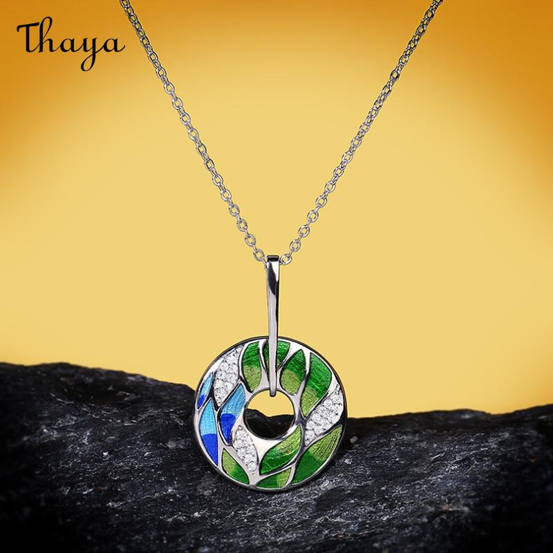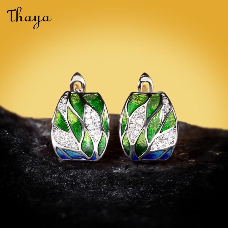 This charming jewelry set features a nature-inspired design with leaf-shaped enamel accents in shades of green and blue. Sparkling rhinestones add a touch of elegance to the pieces.