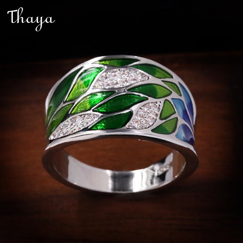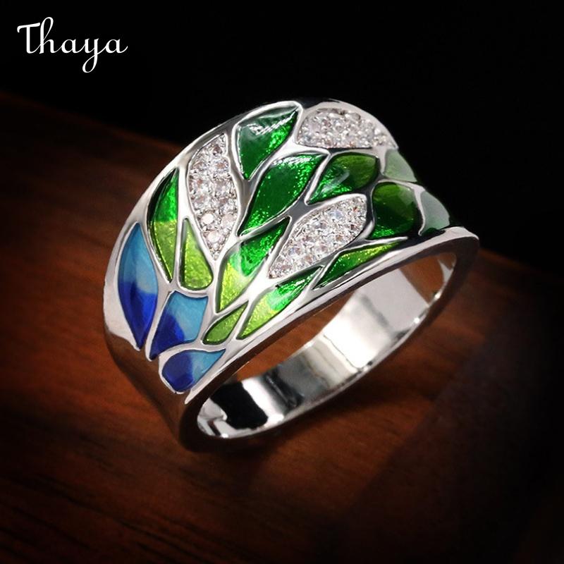 - Ring:Wide band ring adorned with enamel leaves and rhinestones.