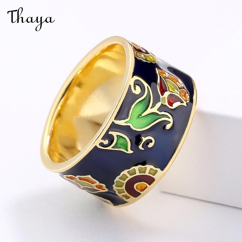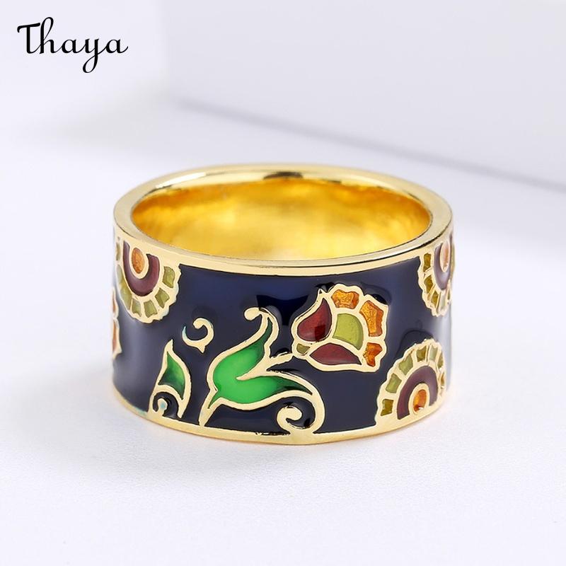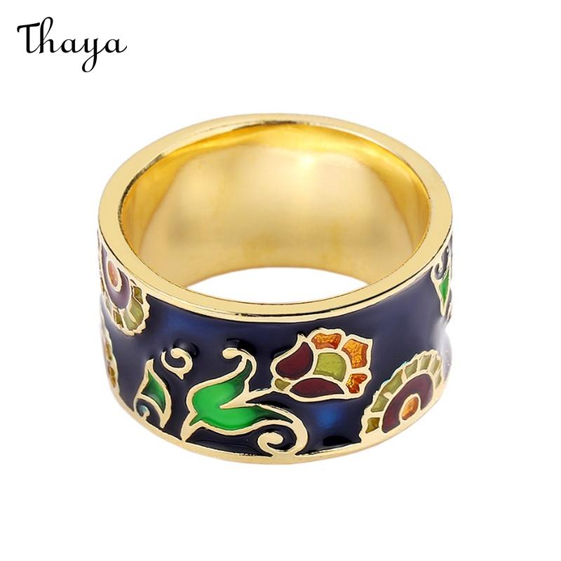 Thaya Vintage Enamel 18K Gold-plated Floral Ring