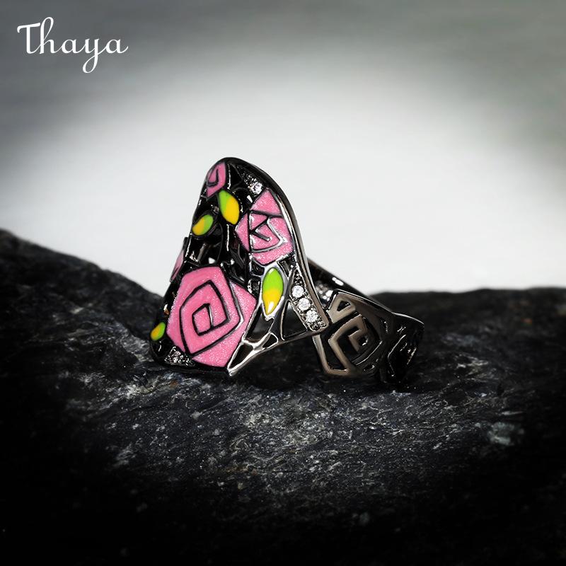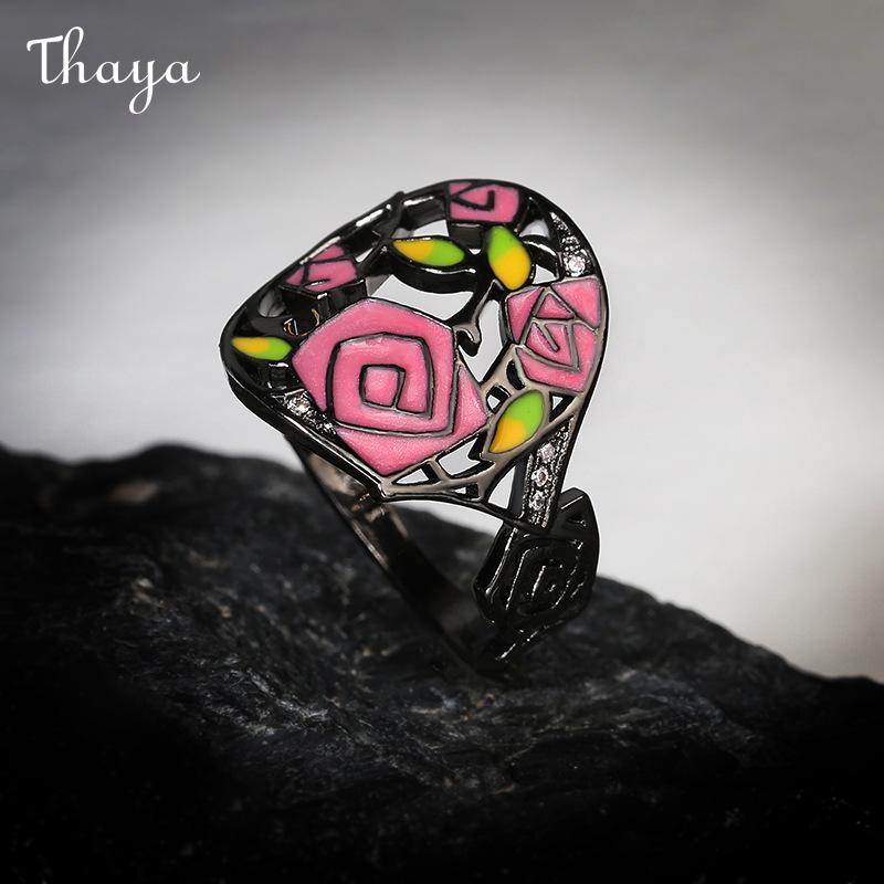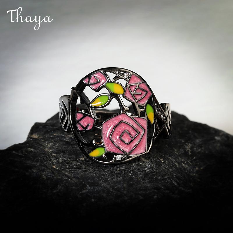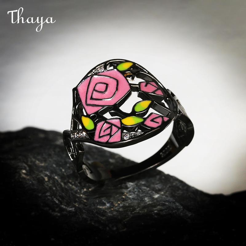 This ring is designed with delicate roses, creating a stylish and refined look. The black tone and pink roses combine to give it a chic vintage style.