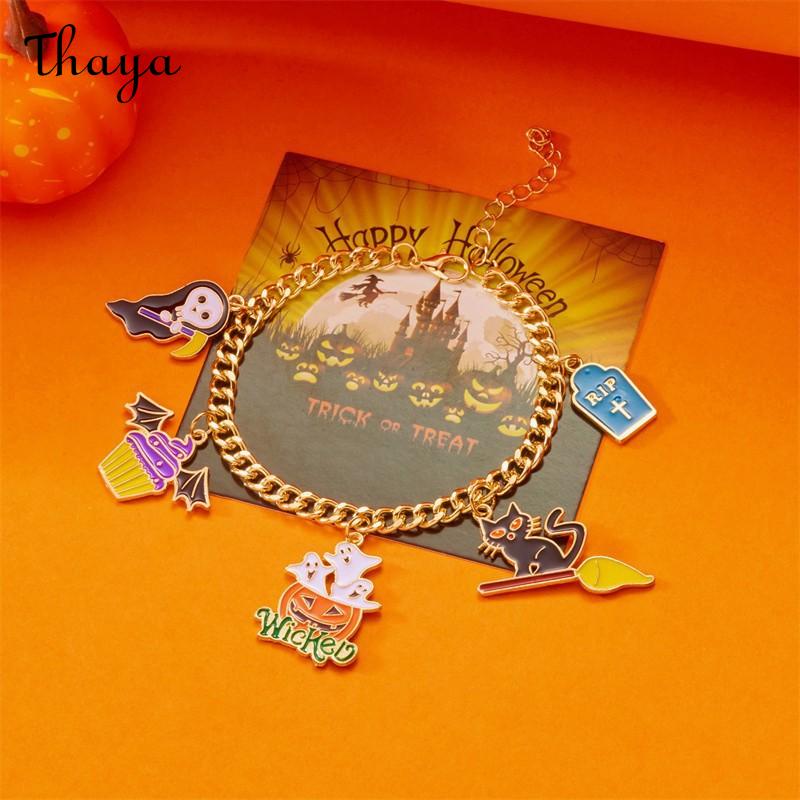 Thaya Halloween Charm Pumpkin Head Ghost Bracelet