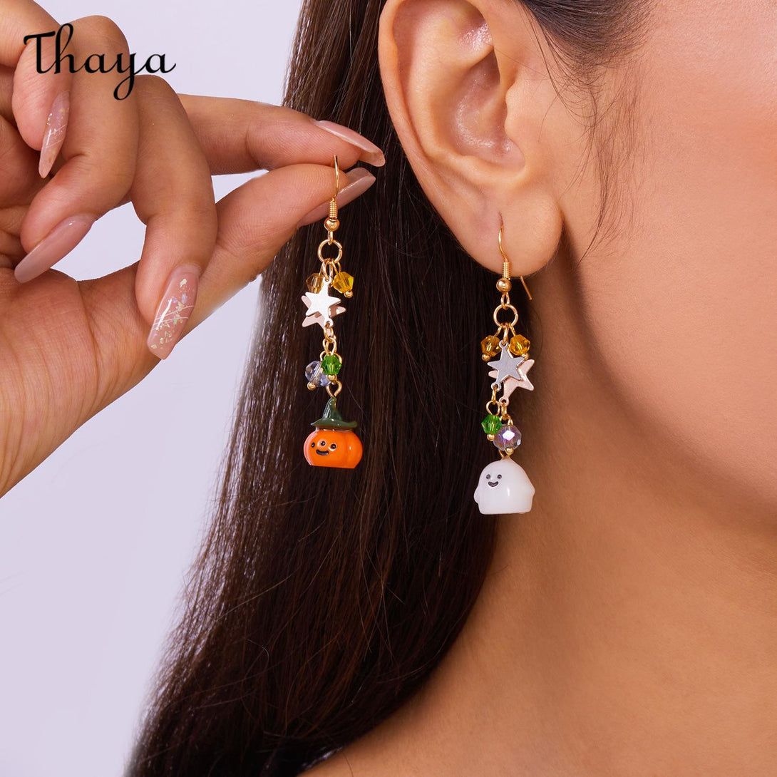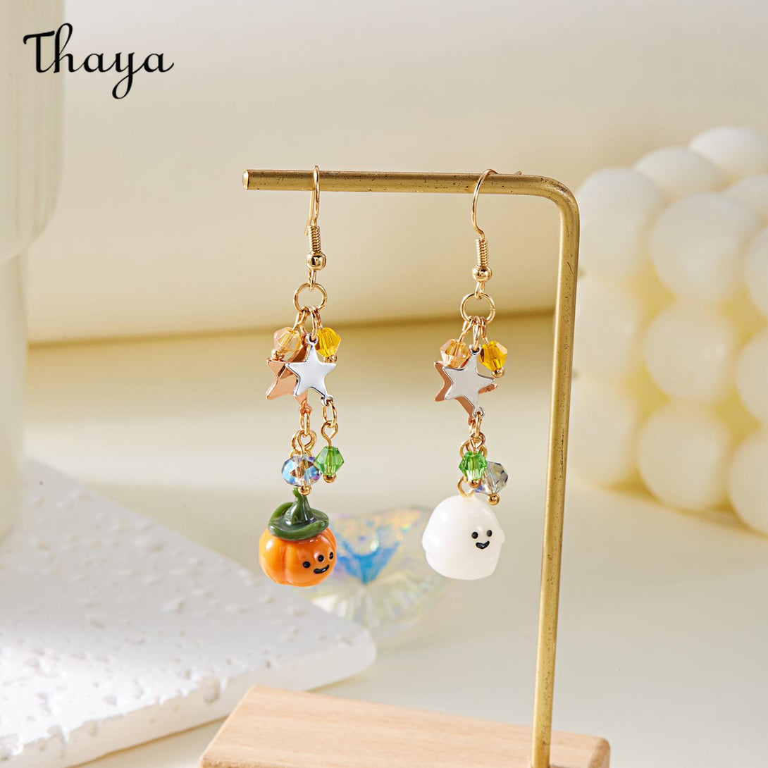 Thaya Halloween Pumpkin Ghost Drop Earrings