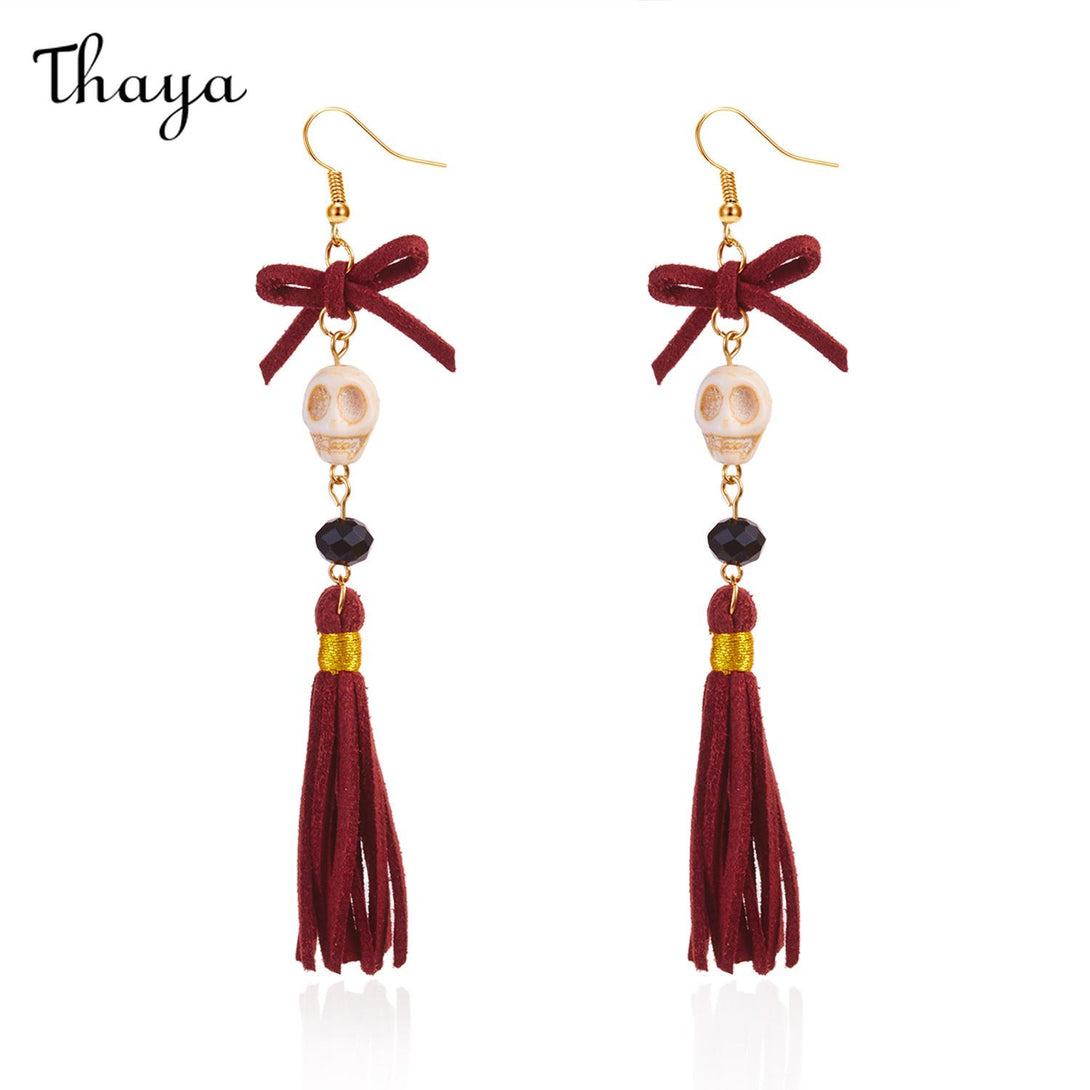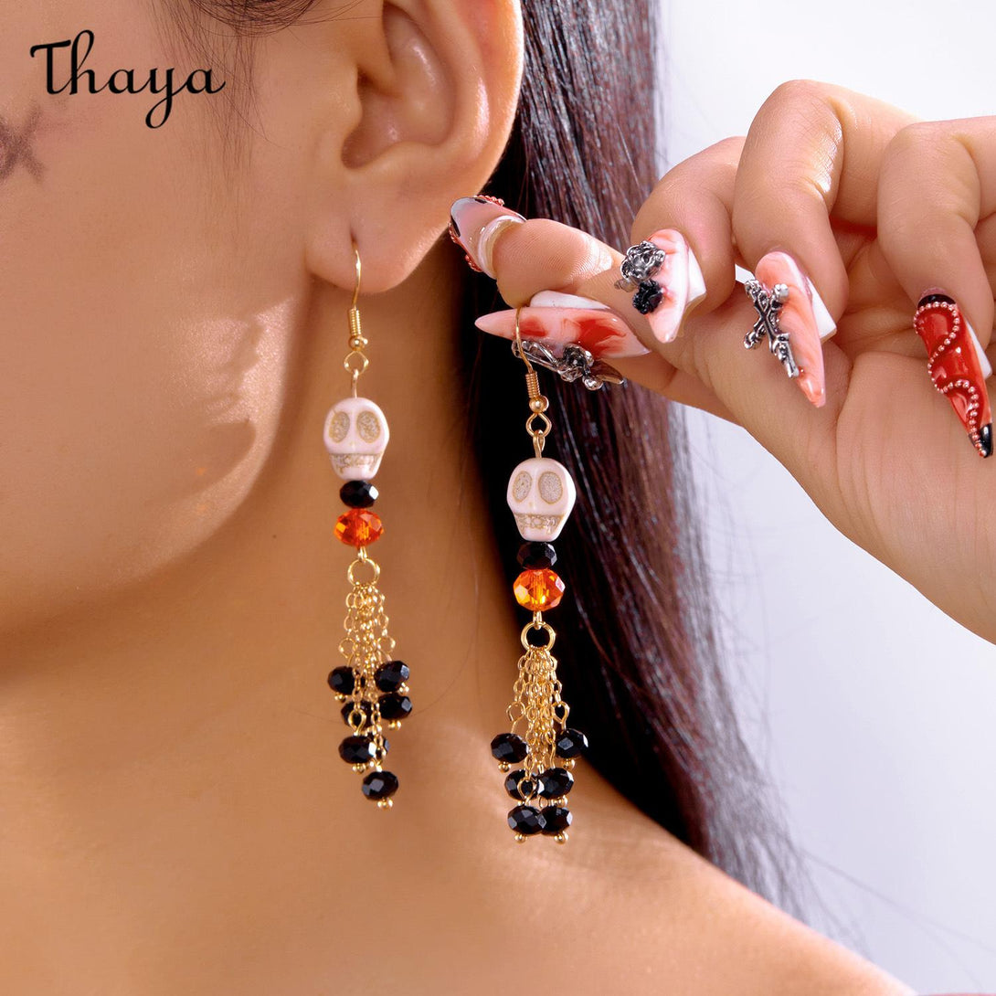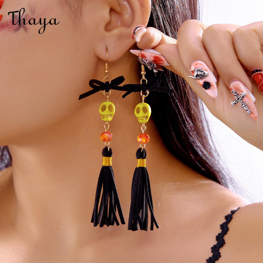 Thaya Halloween Skull Tassel Drop Earrings