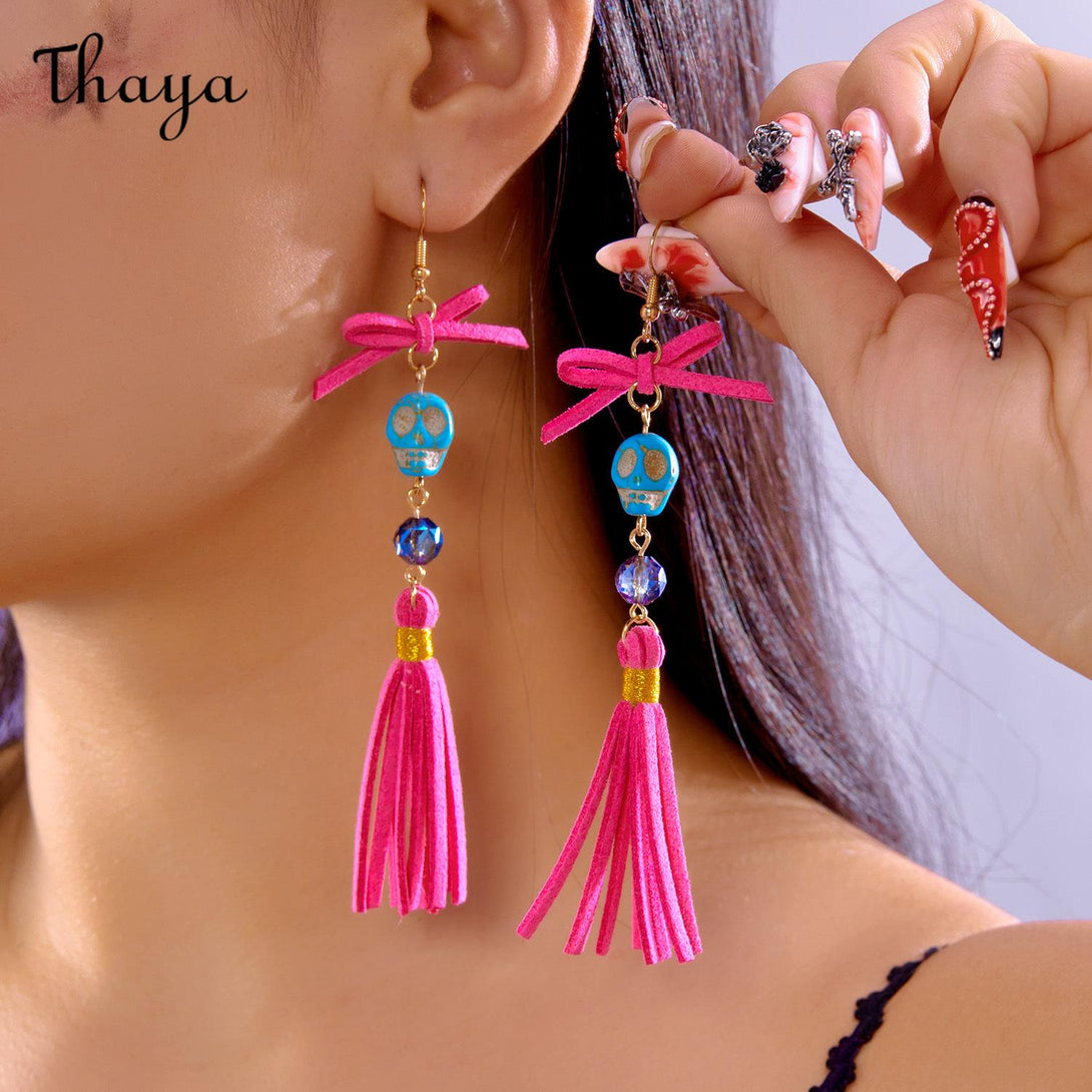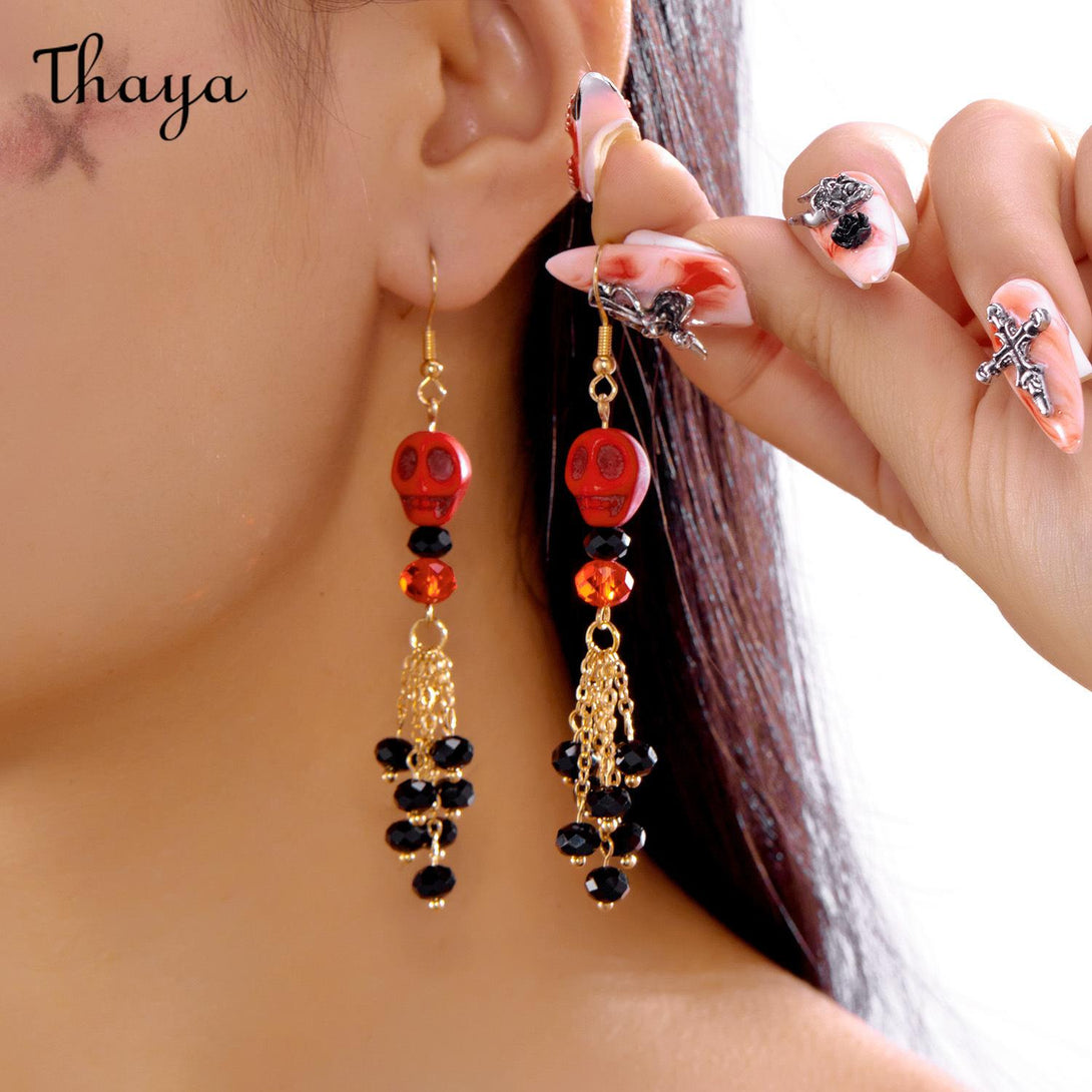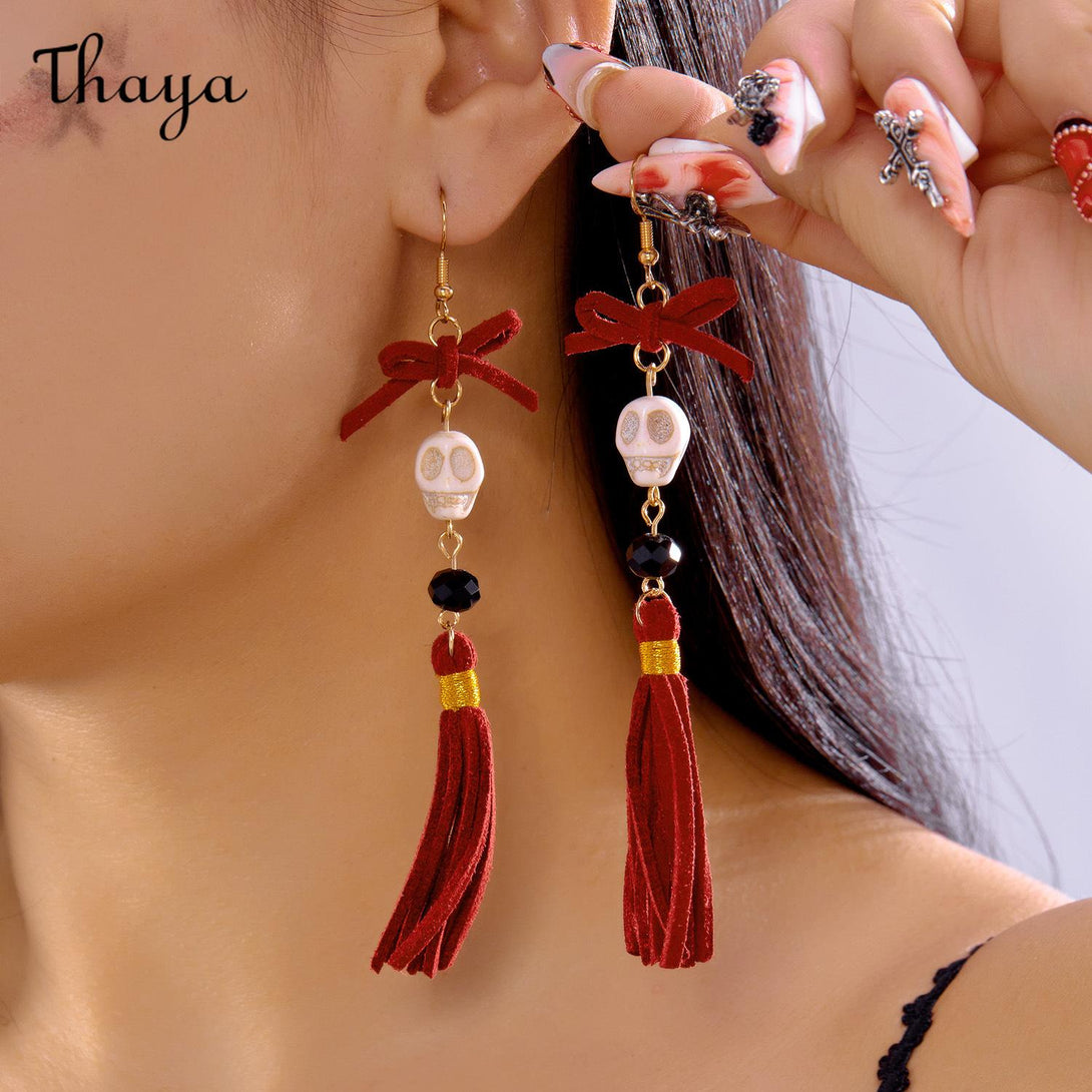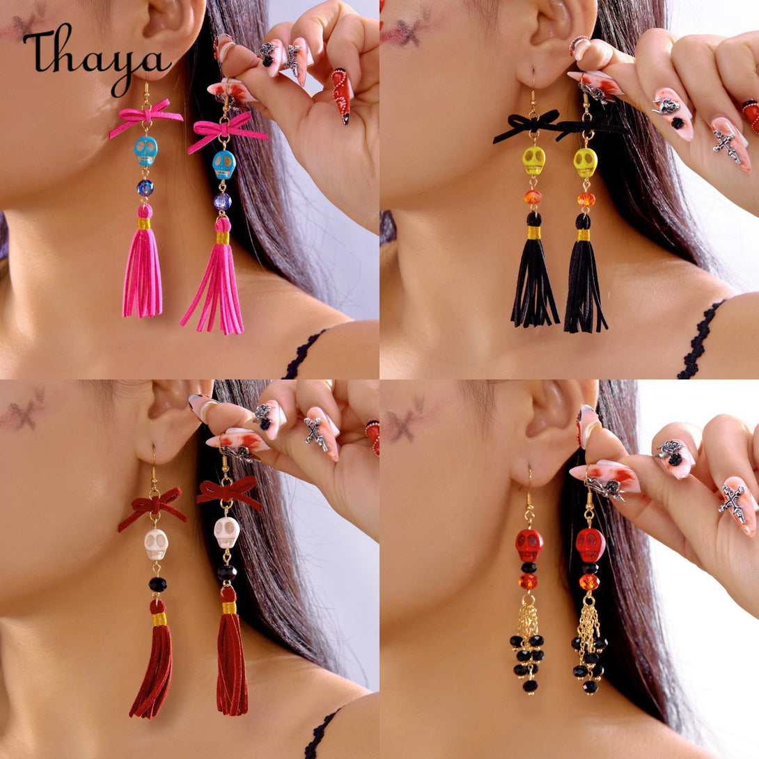 Thaya Halloween Skull Tassel Drop Earrings