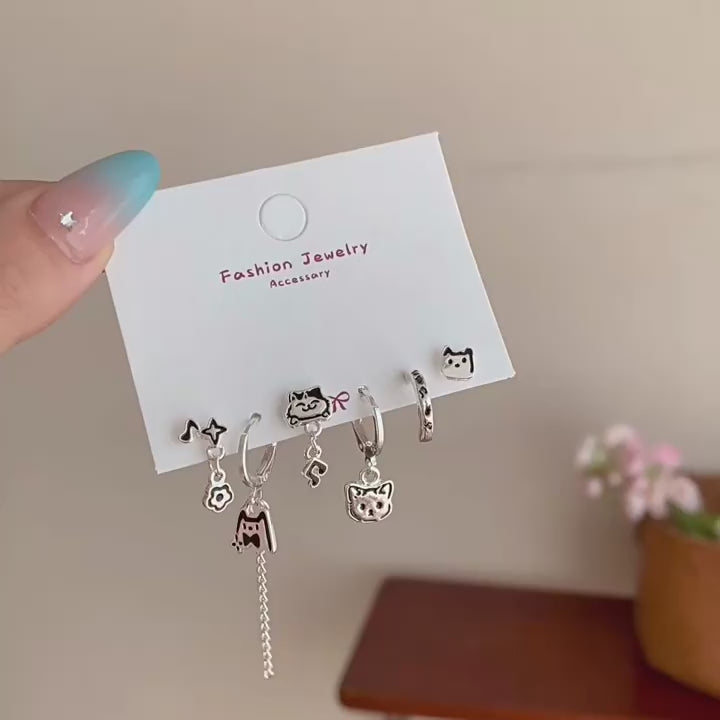 Thaya Musical Note Cat Earrings Set - 6pcs