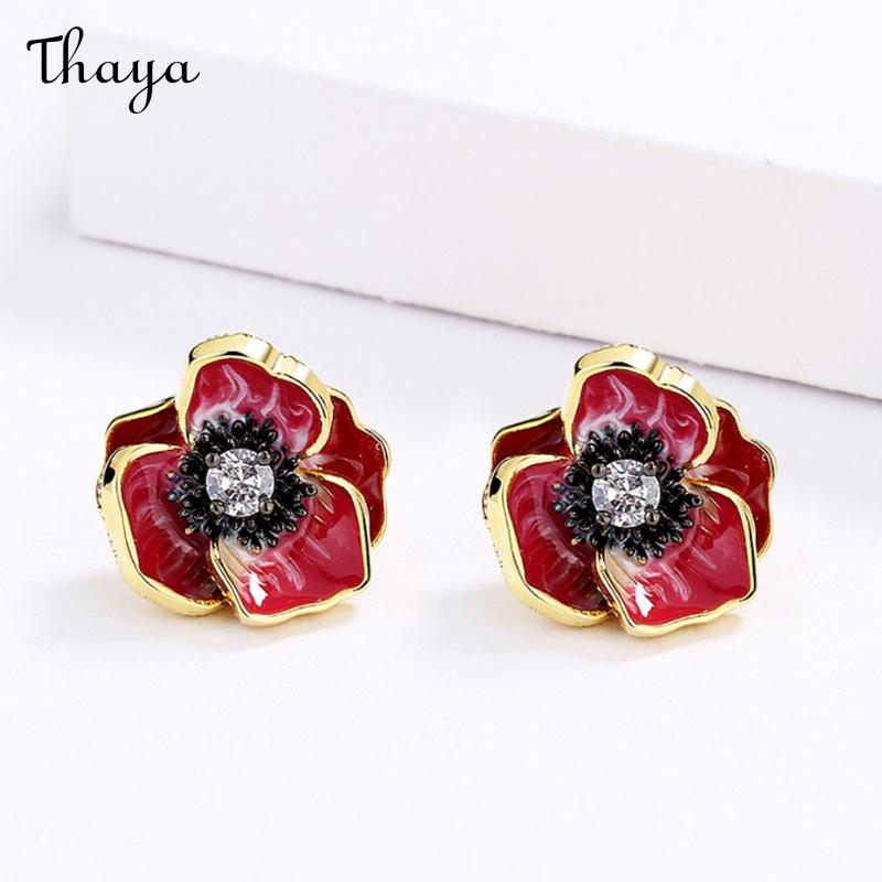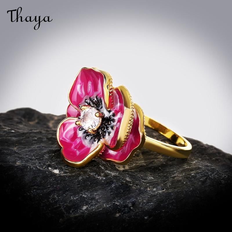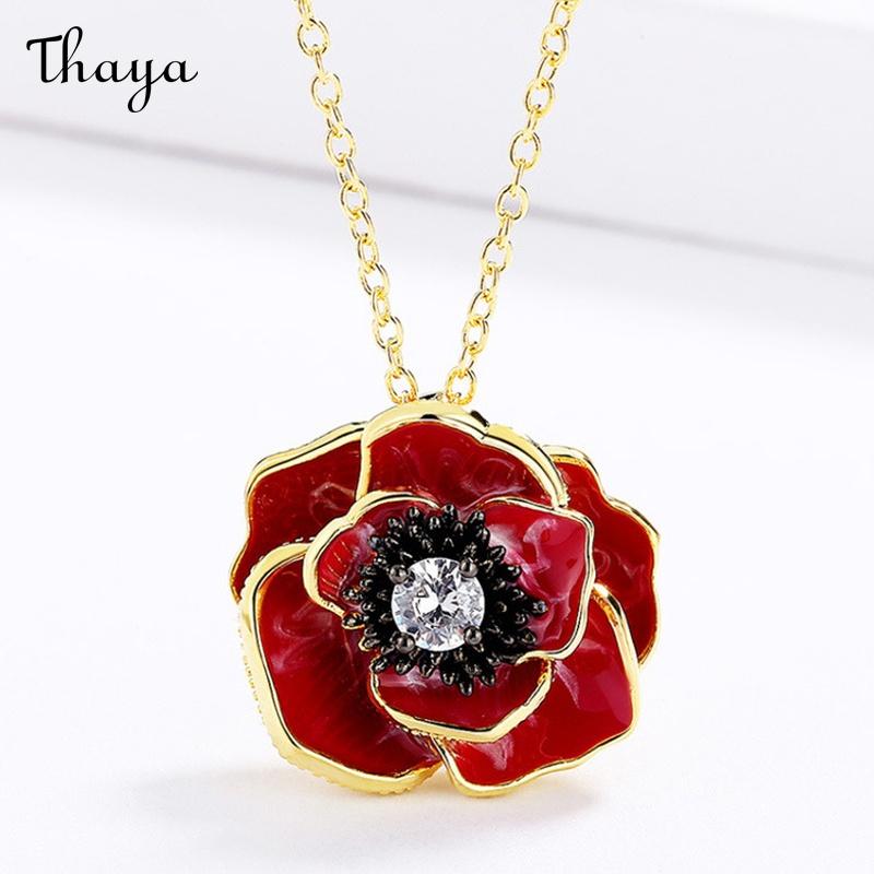 Elevate your style with this stunning poppy flower jewelry set. Featuring a beautiful ring, necklace, and earring set, each piece showcases a detailed poppy design, centered with a sparkling gemstone.