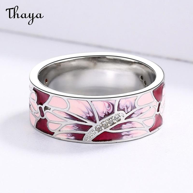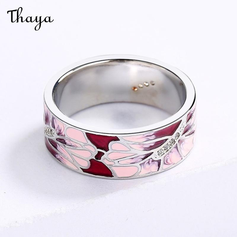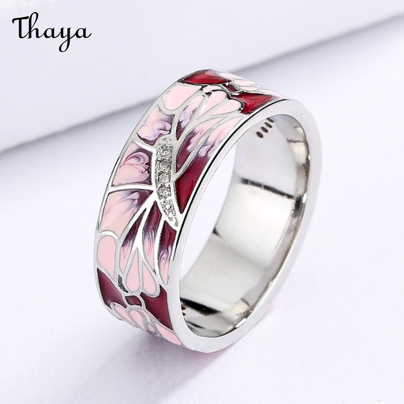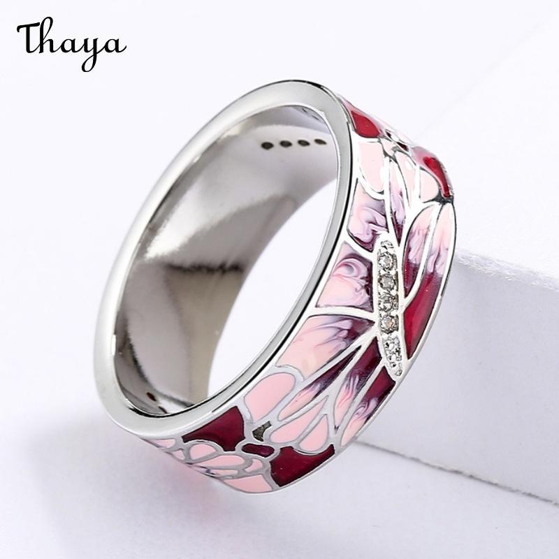 This stunning ring features a delicate butterfly design, brought to life with vibrant enamel detailing. The wings showcase beautiful shades of pink and red, outlined in a sleek silver tone. A touch of sparkle is added with a row of small stones that trace along the wing. It is a beautiful and eye catching ring.