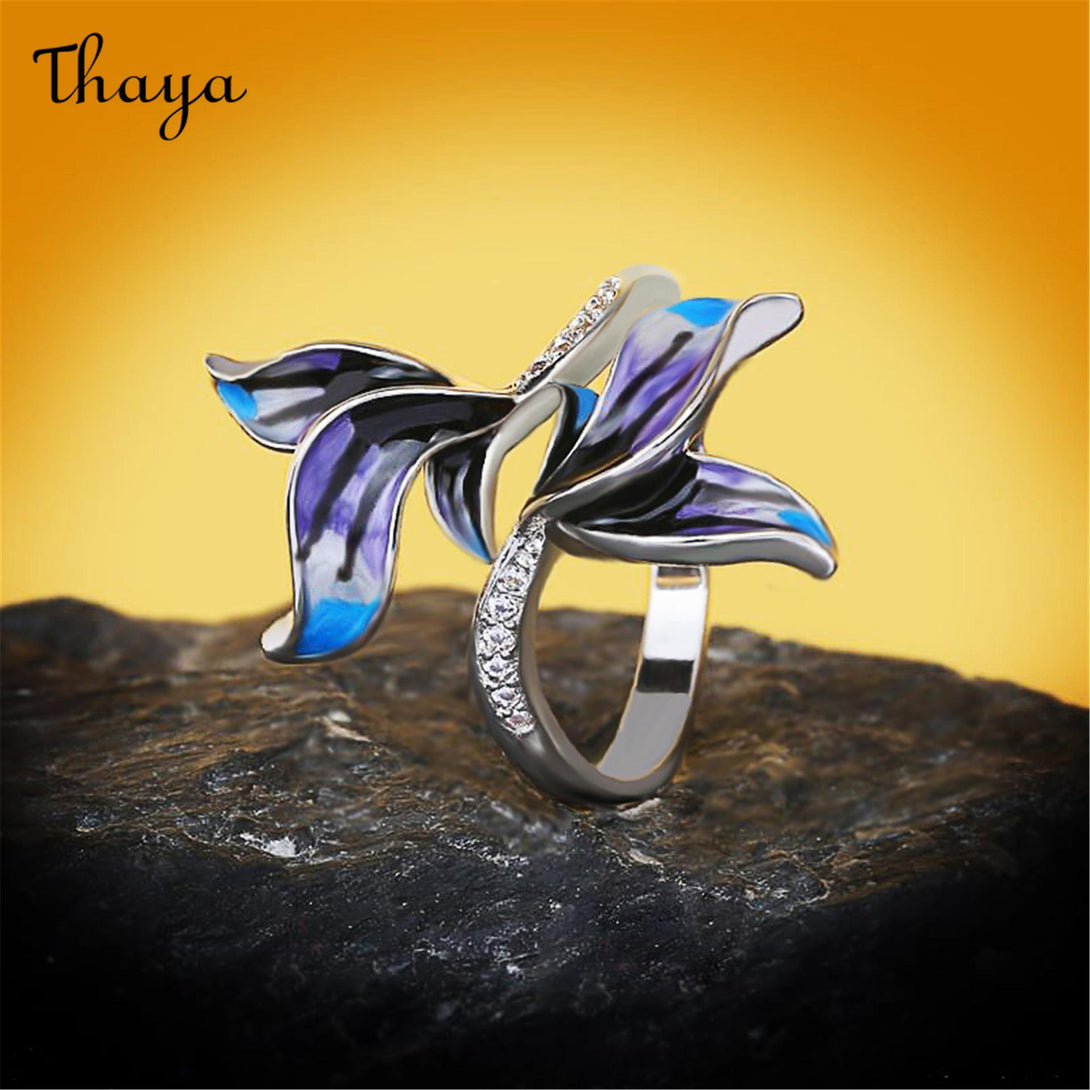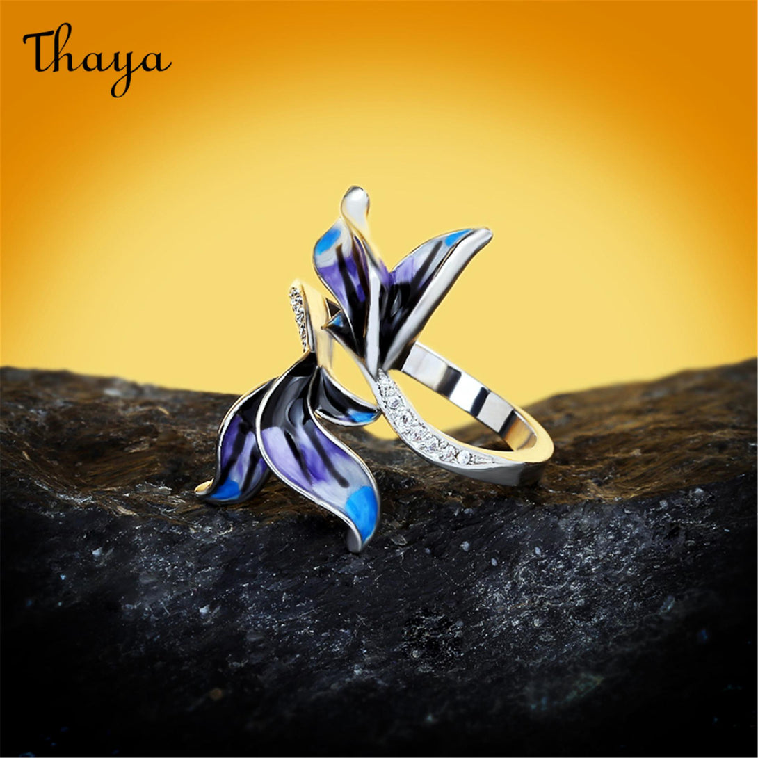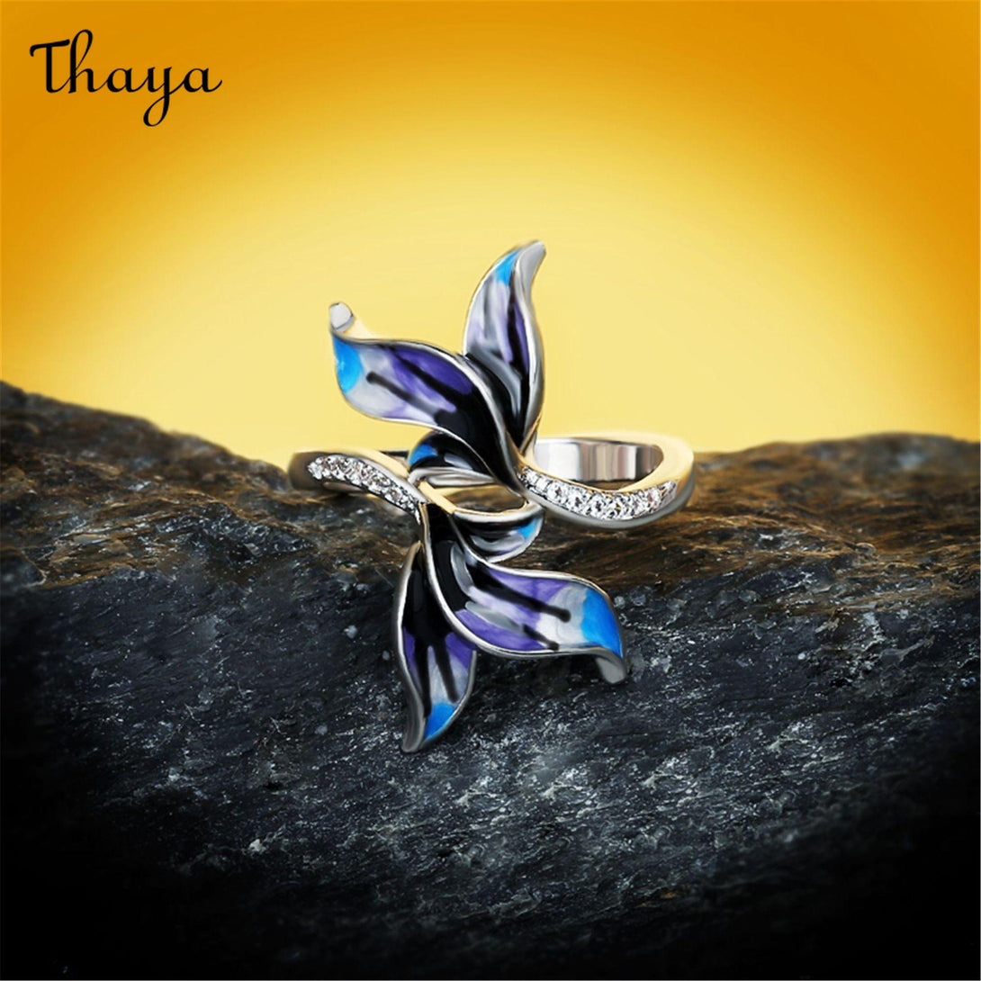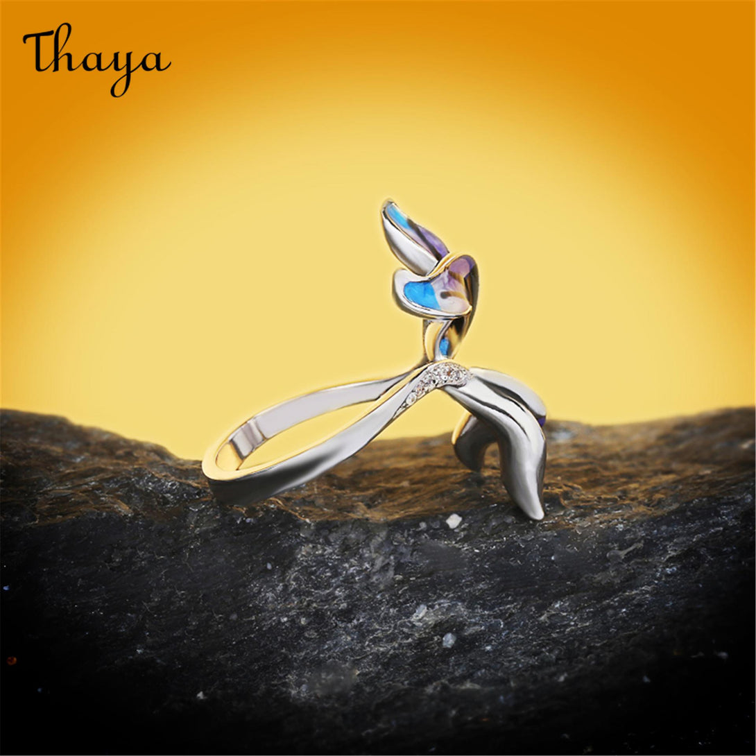 This exquisite ring is shaped like butterfly wings.The butterfly wings are gradient color. The ring band is inlaid with small diamonds, adding to its charm and elegance.