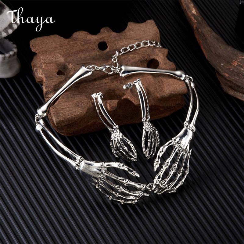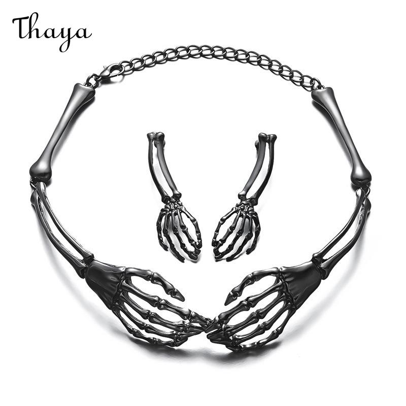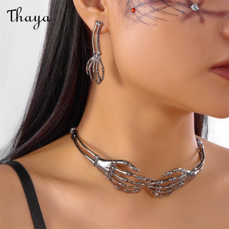 Thaya Halloween Dark Retro Ghost Hand Necklace Earring Set