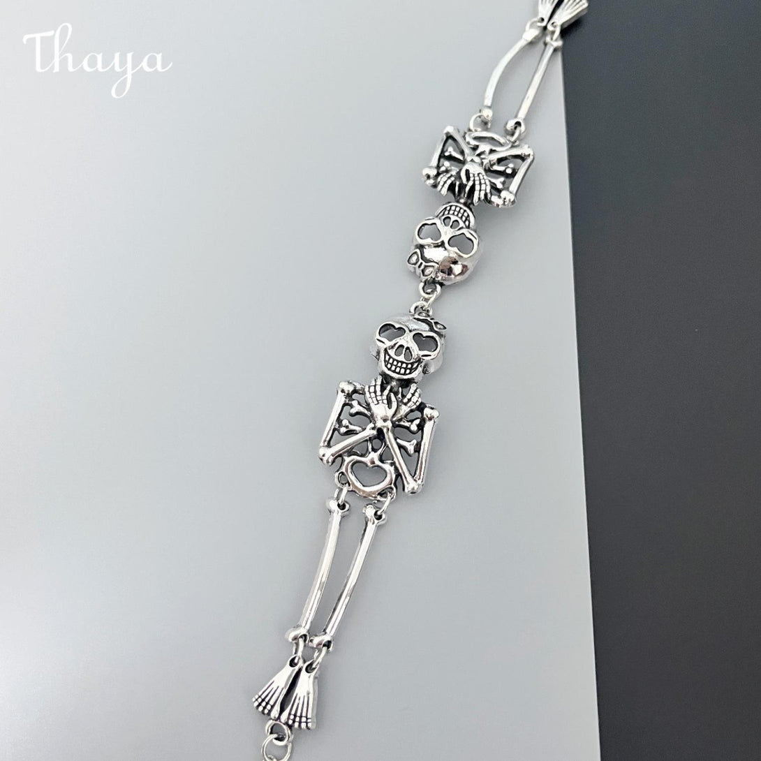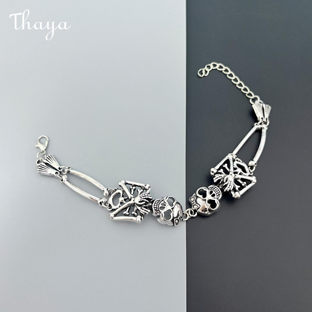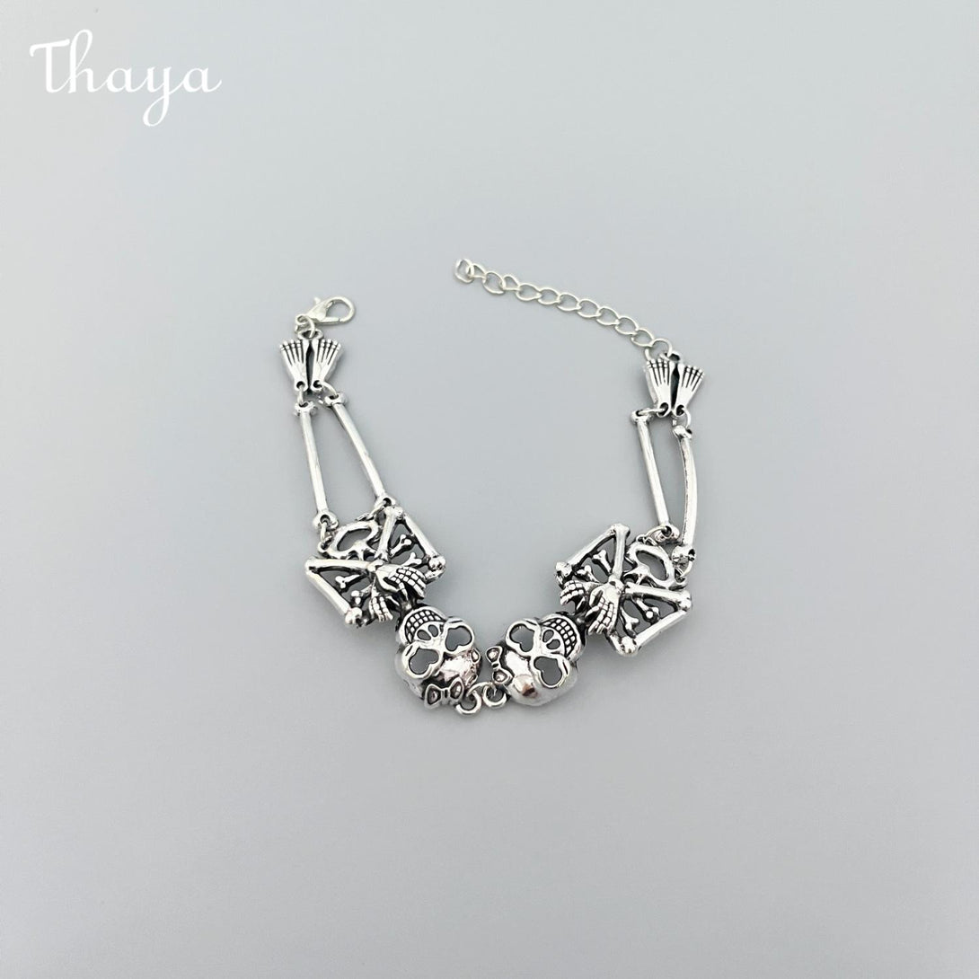 Embrace a unique style with this distinctive bracelet. It features a captivating design with alternating skull and bone motifs, creating an edgy and bold look. The antiqued silver finish enhances the details of the skulls and crossbones, adding a touch of gothic charm.