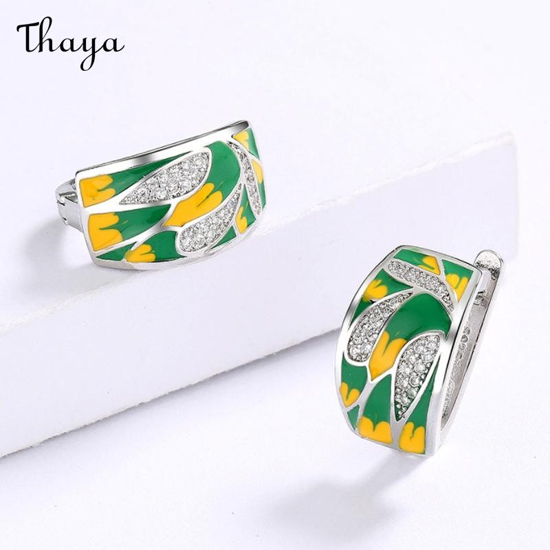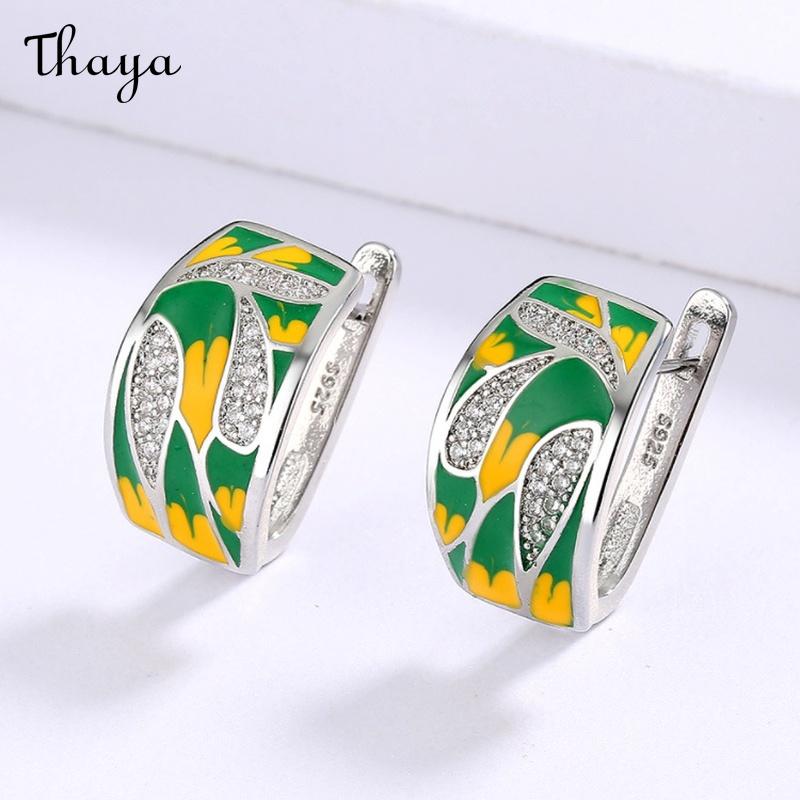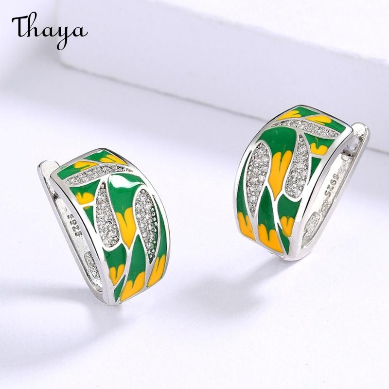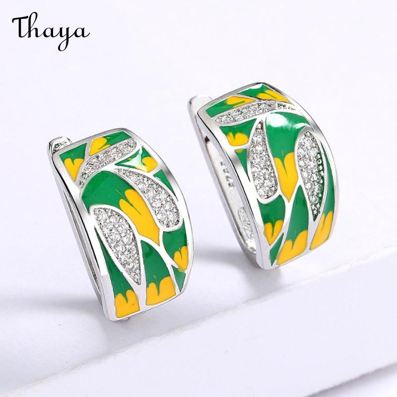 Thaya Stylish Green Forest Enamel Zircon Earrings