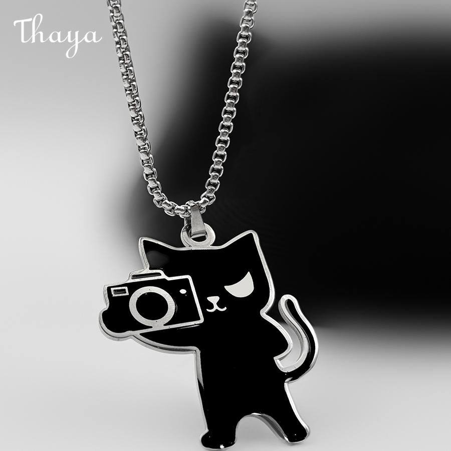 Thaya Photographic Black Cat Necklace