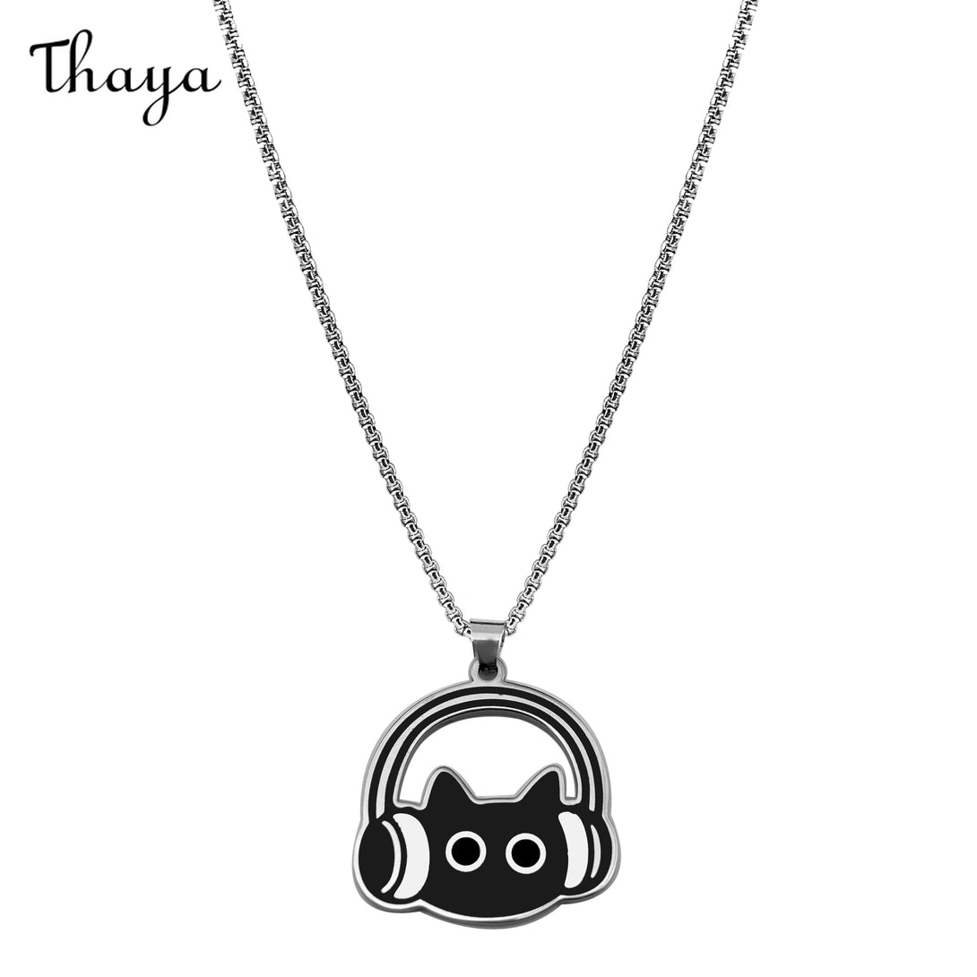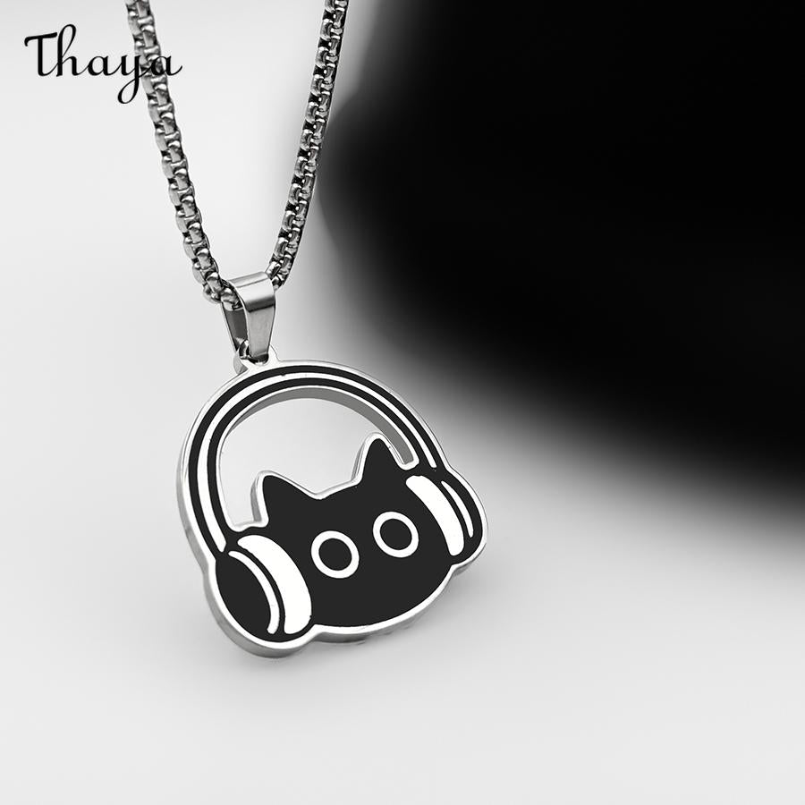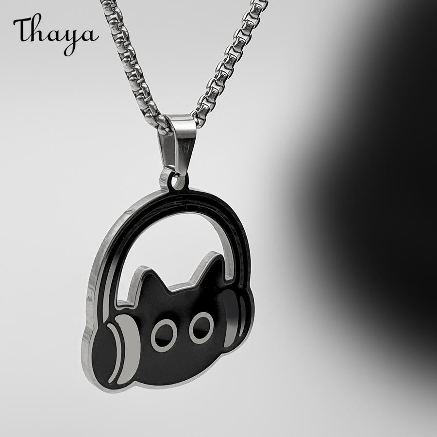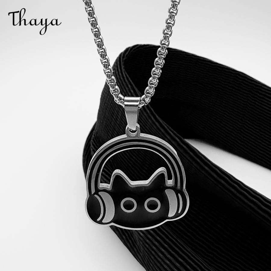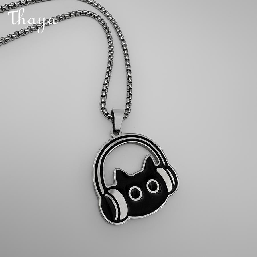 This eye-catching necklace features a playful pendant of a cat wearing headphones. The design is modern and fun, perfect for adding a touch of personality to any outfit.