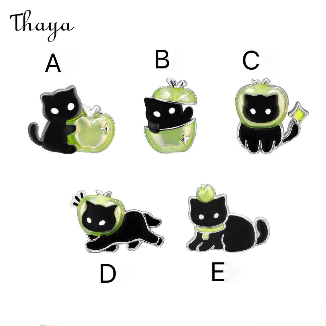 These adorable cat brooches are perfect for adding a touch of whimsy to your style. Each brooch features a charming black cat design paired with a fun, fruity element in a variety of poses and shapes.