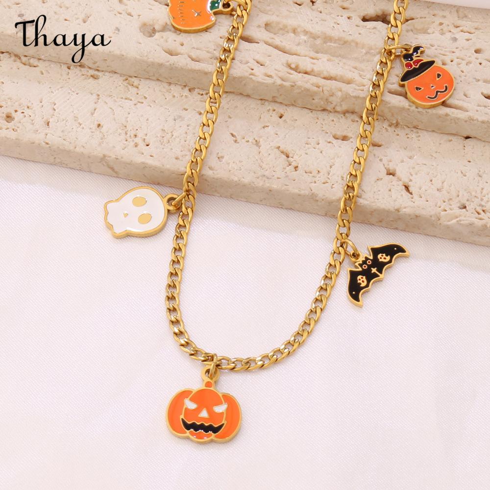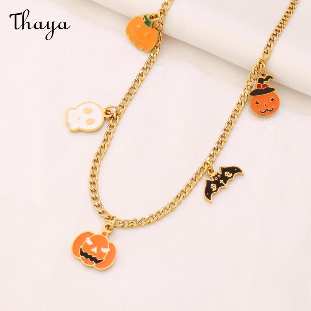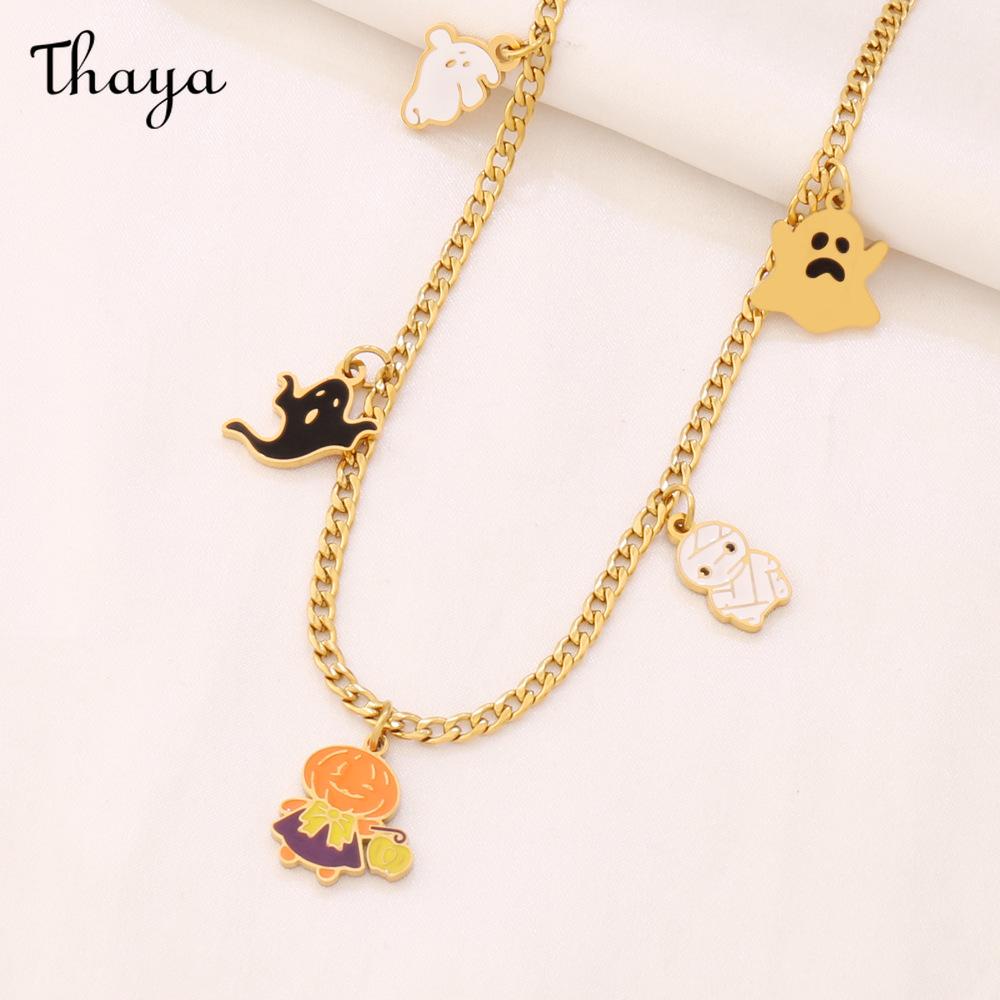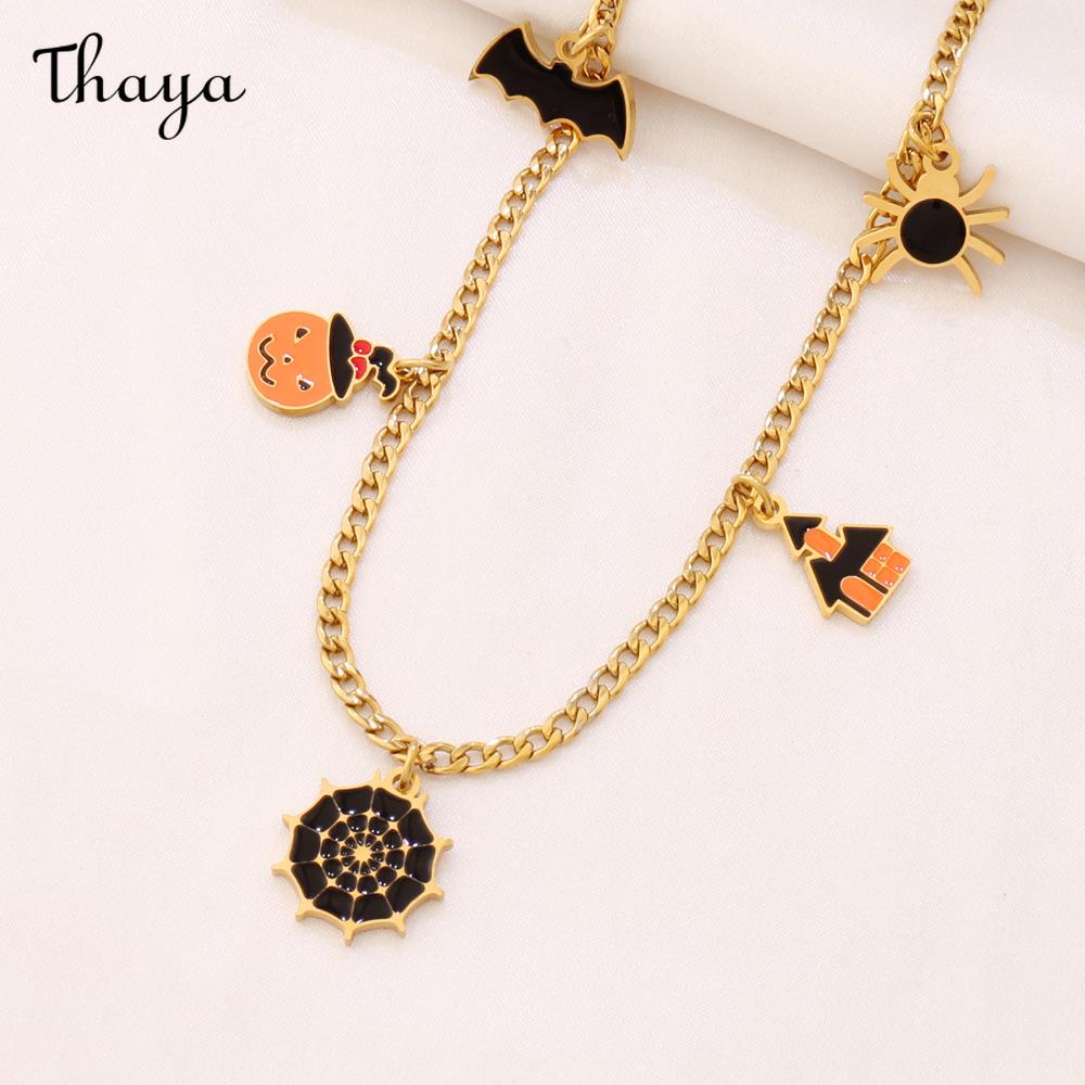 Add a touch of spooky fun to your style with these Halloween-themed charm necklaces. Each necklace features a delicate gold chain adorned with whimsical charms perfect for the Halloween season.