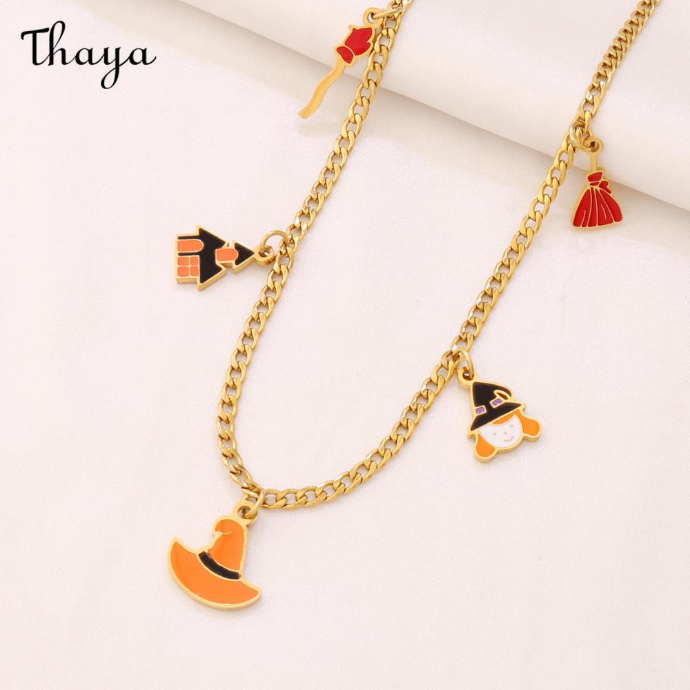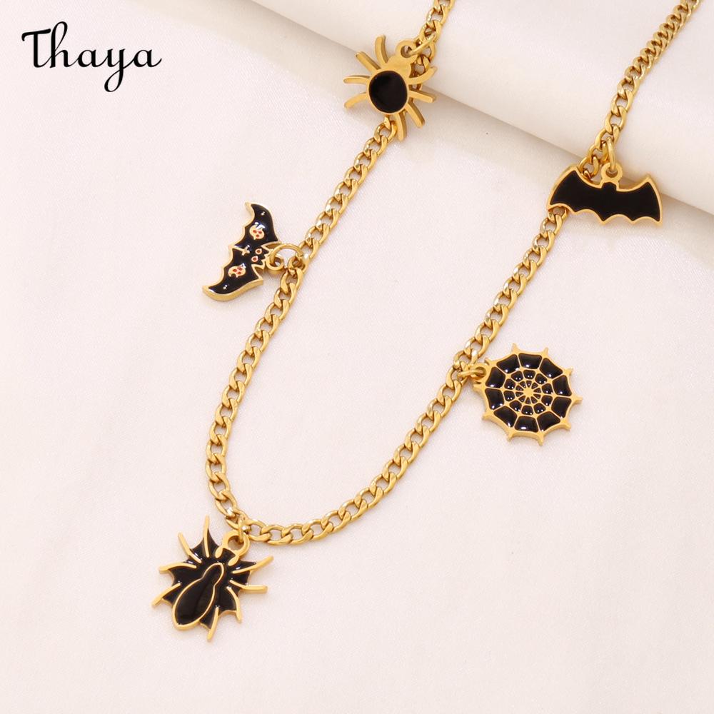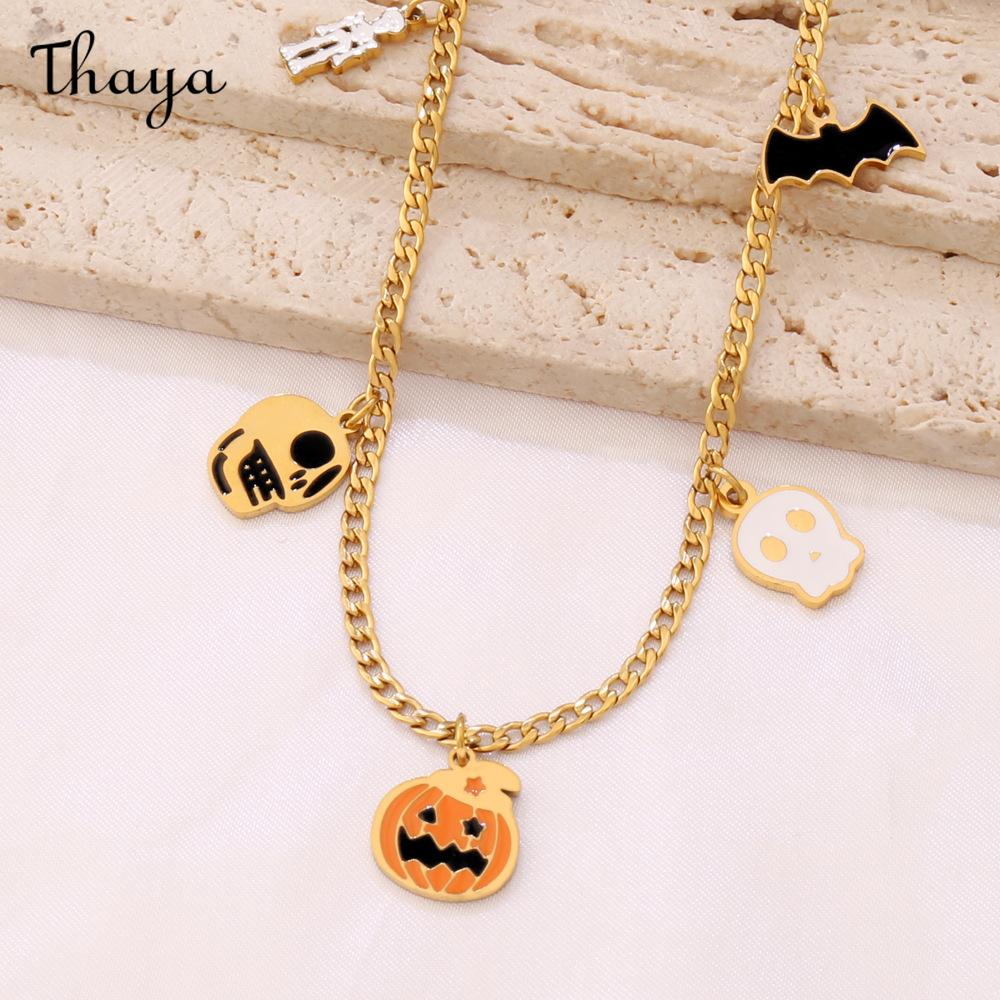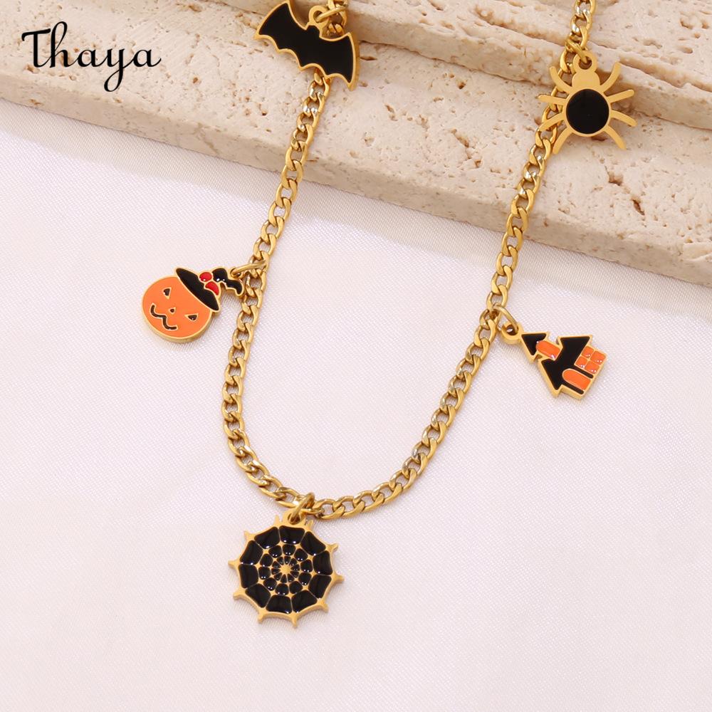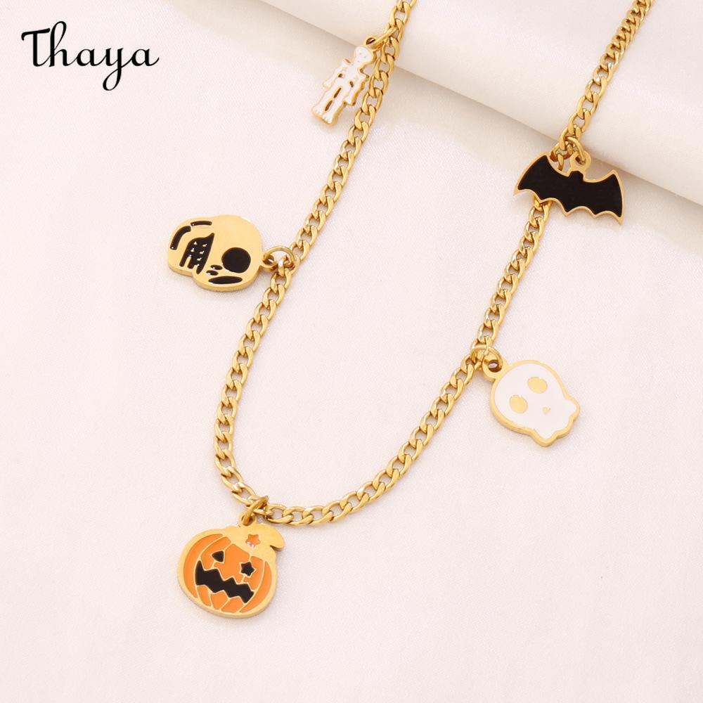 Add a touch of spooky fun to your style with these Halloween-themed charm necklaces. Each necklace features a delicate gold chain adorned with whimsical charms perfect for the Halloween season.