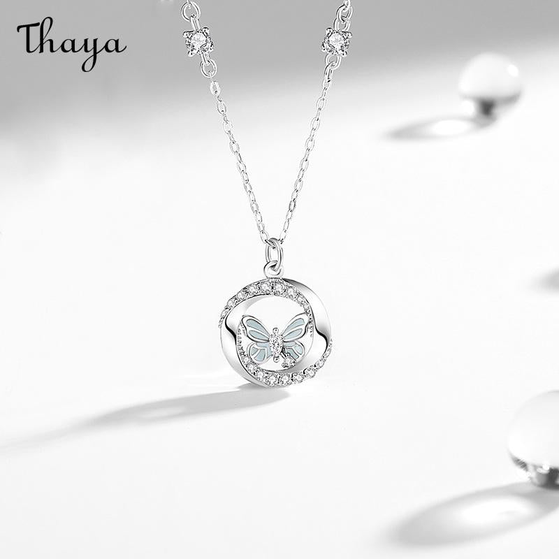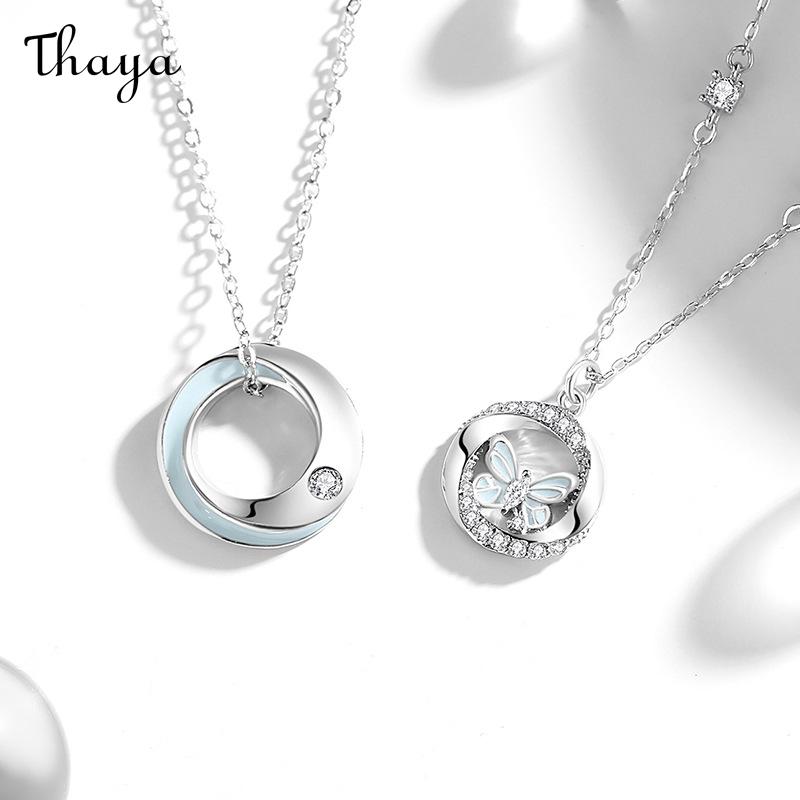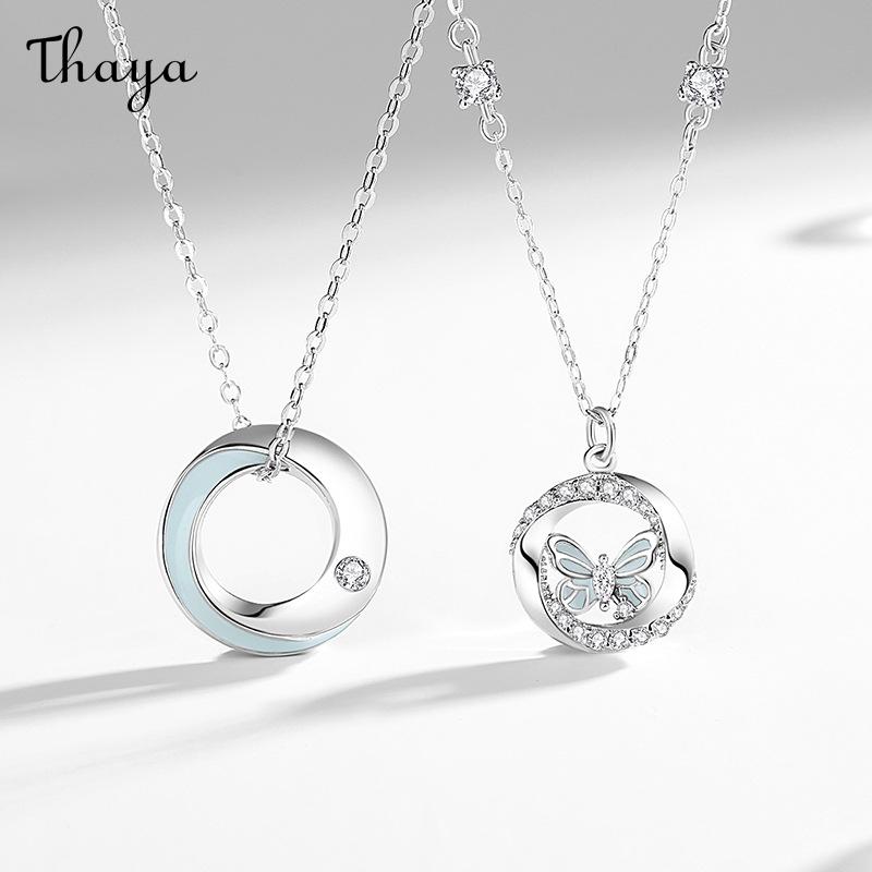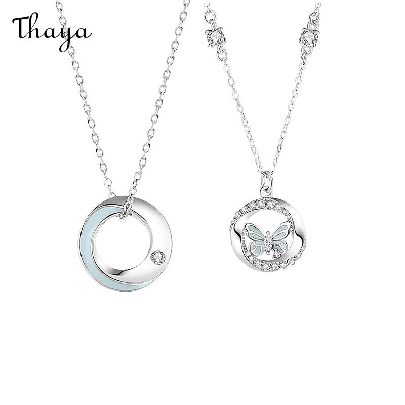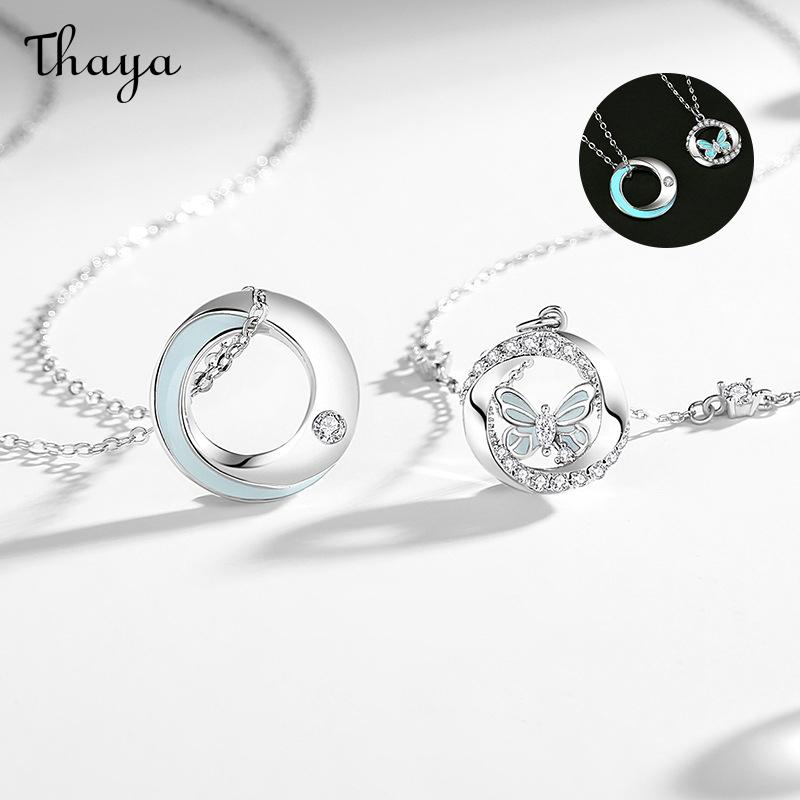 Thaya S925 Silver Luminous Enamel Butterfly Couple Necklaces
