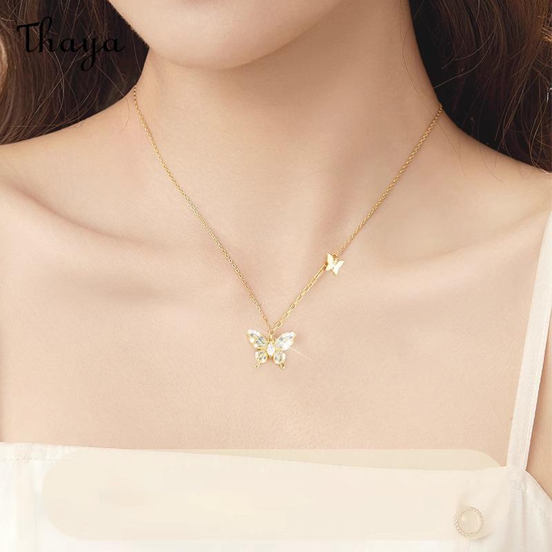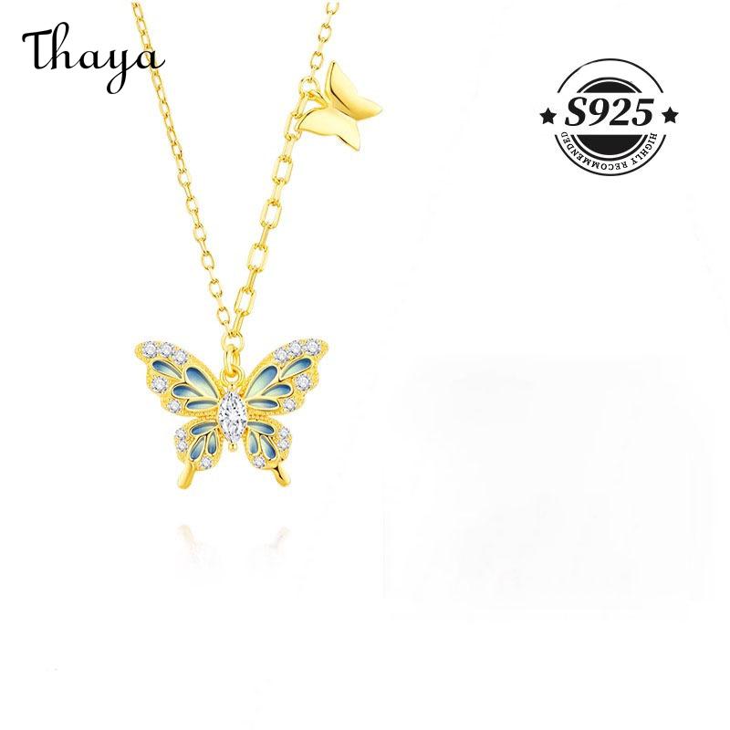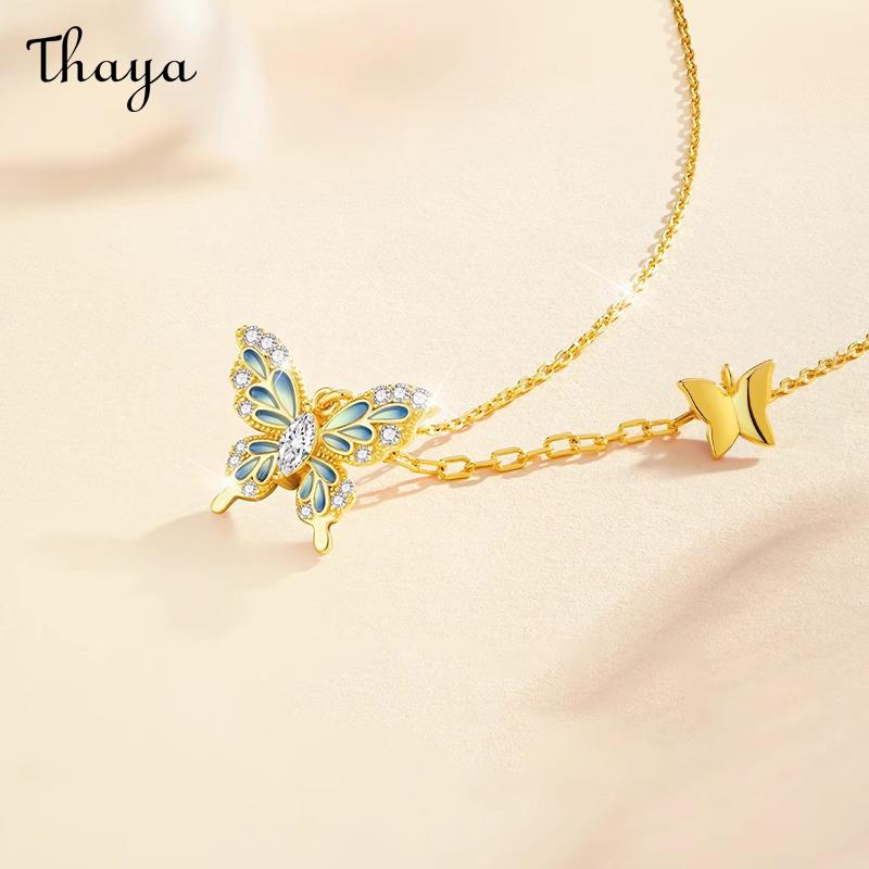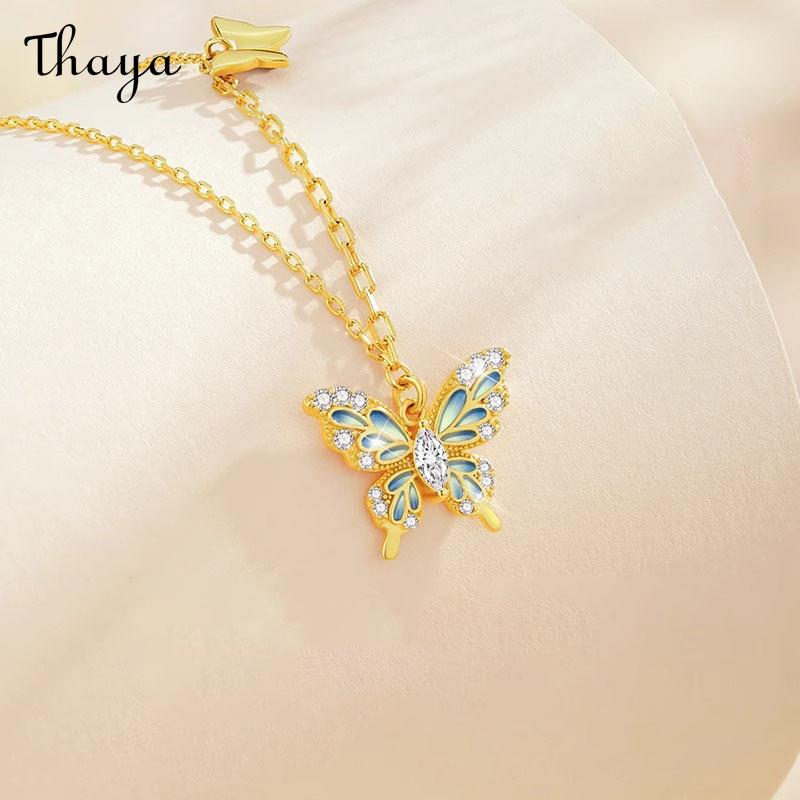 Thaya S925 Silver Luminous Enamel Colorful Butterfly Necklace