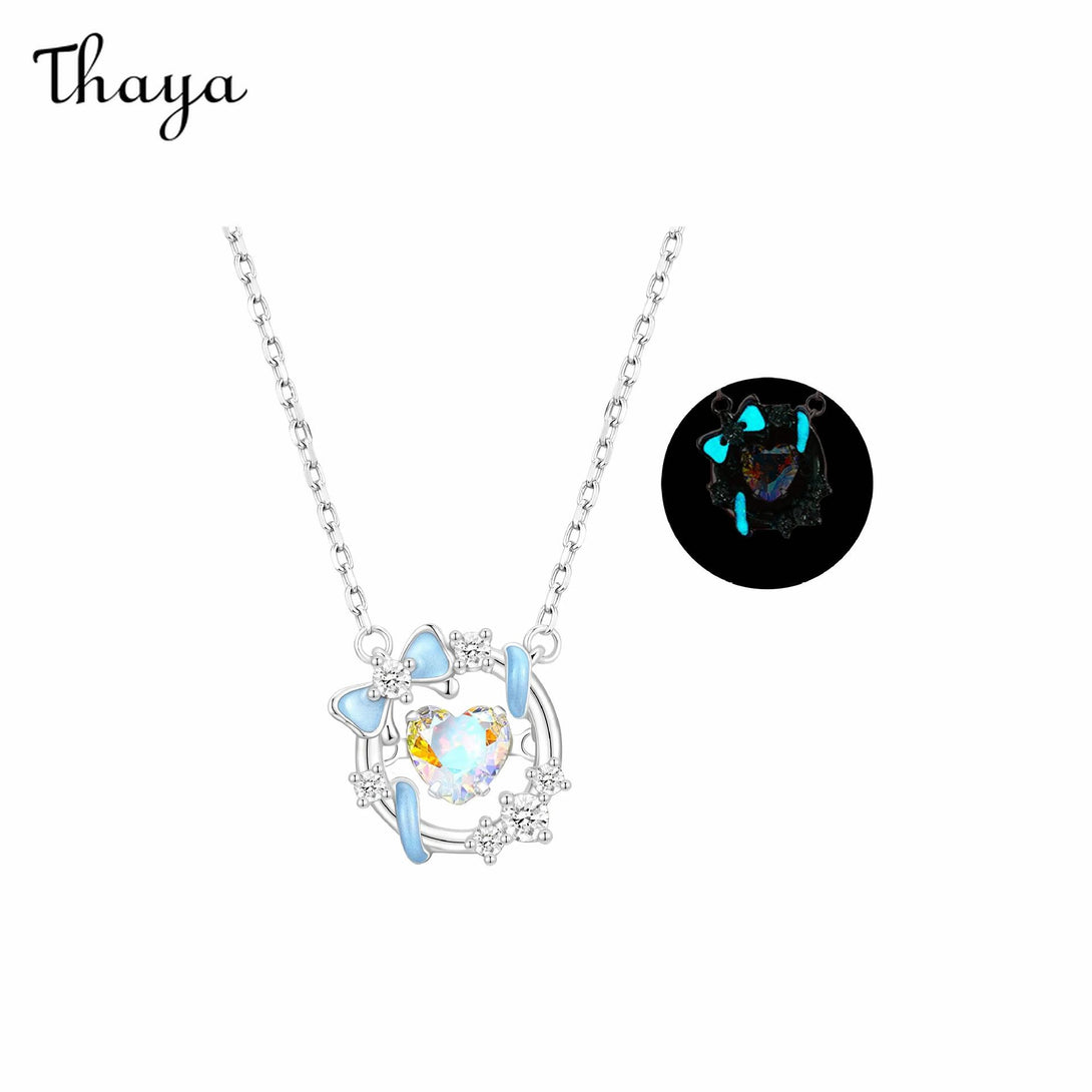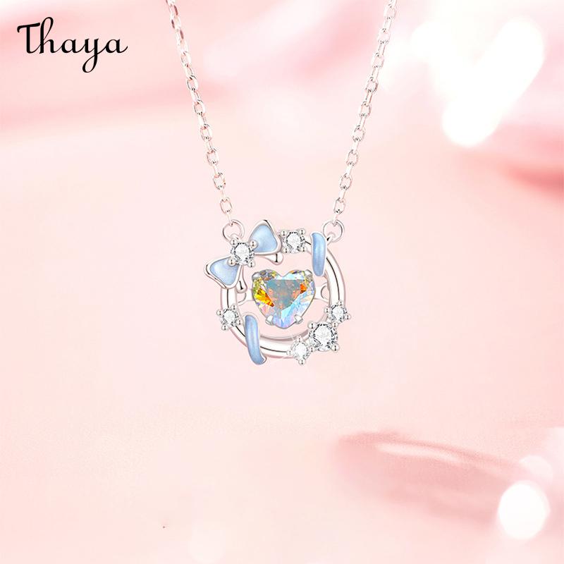 This charming necklace features a delicate circle surrounding a heart-shaped gemstone. The design incorporates a sweet bow accent and shimmering stones for a touch of sparkle.