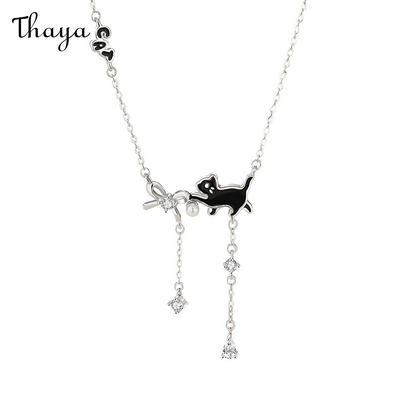 Embrace your playful side with this adorable kitten necklace! This charming piece features a cute black enamel kitten charm hanging between a delicate bow detail and shimmering cubic zirconia.