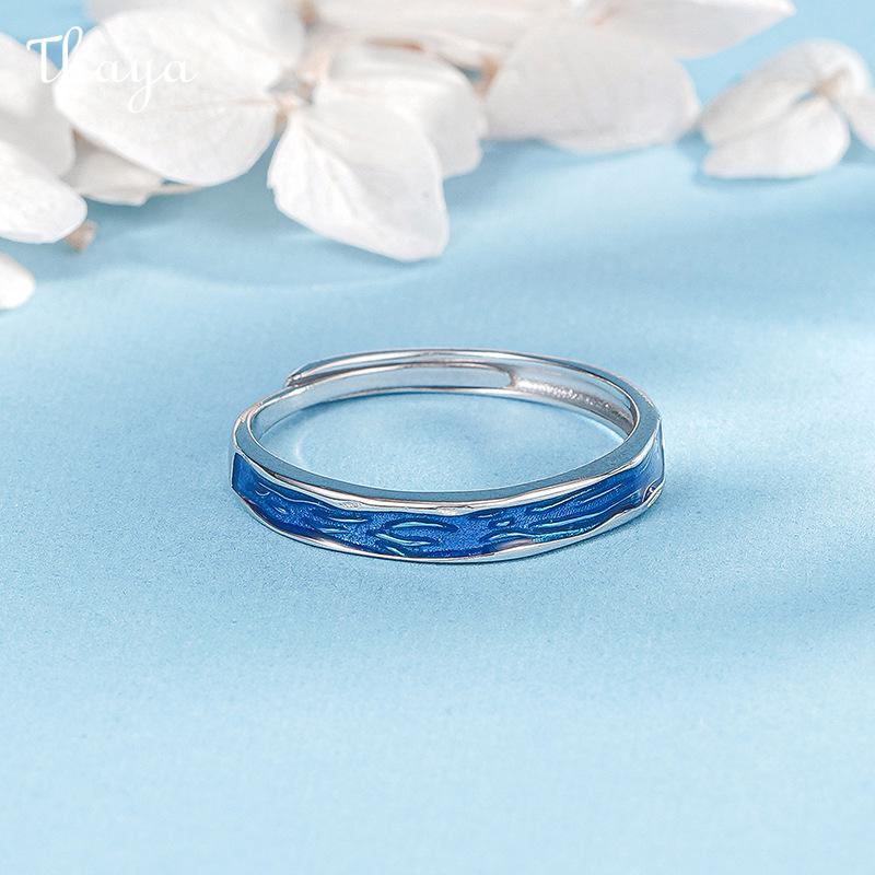 These rings feature a unique design with a vibrant Klein Blue enamel accent, creating a striking and memorable piece of jewelry.