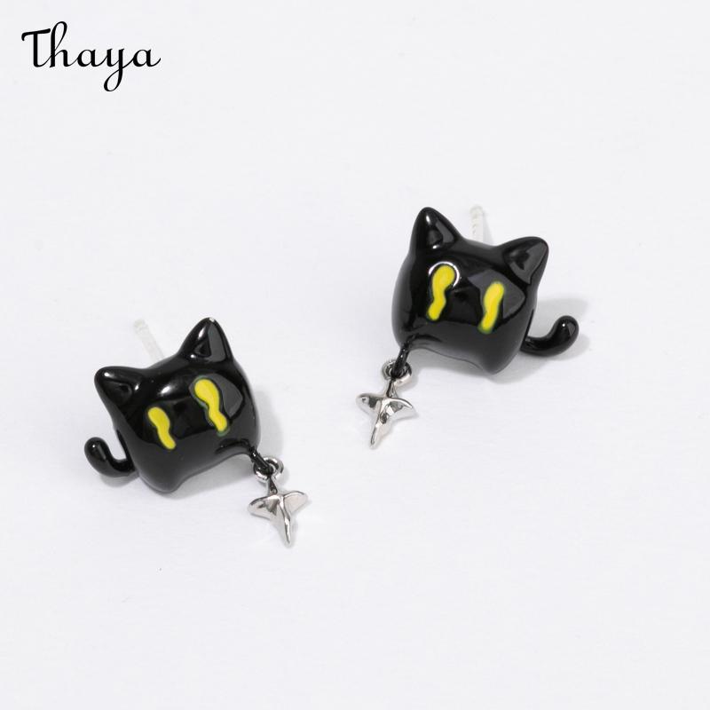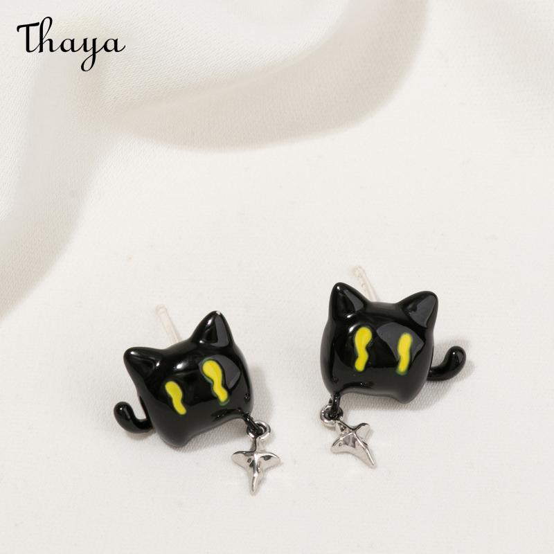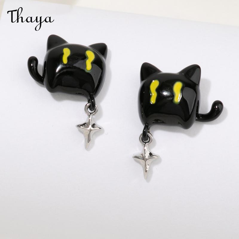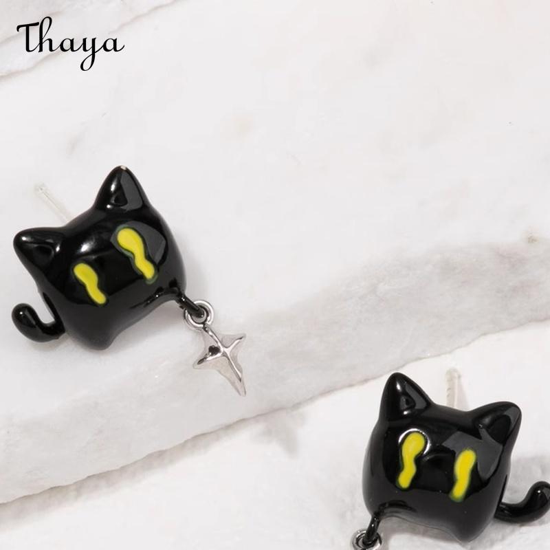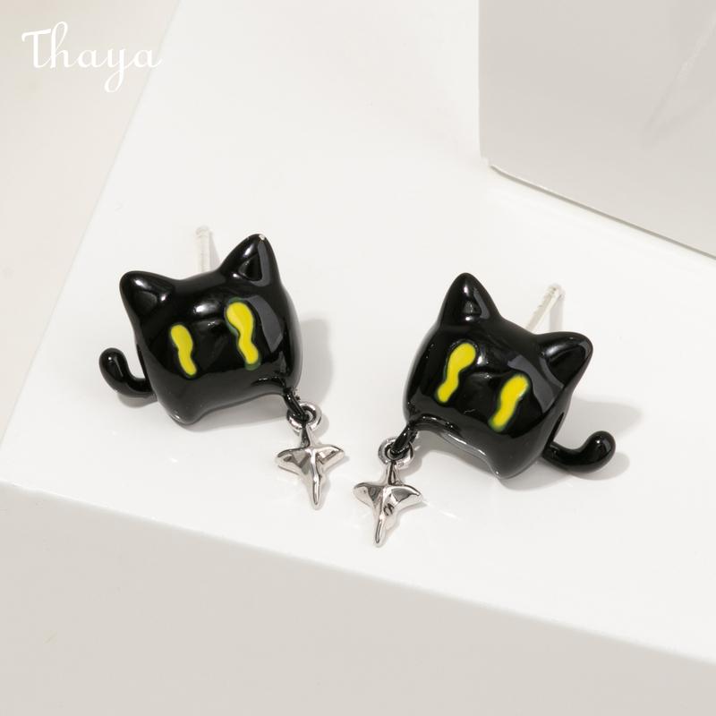 Add a touch of whimsy to your style with these adorable Black Cat Drop Earrings. These earrings feature a charming black cat design with hanging star accents.