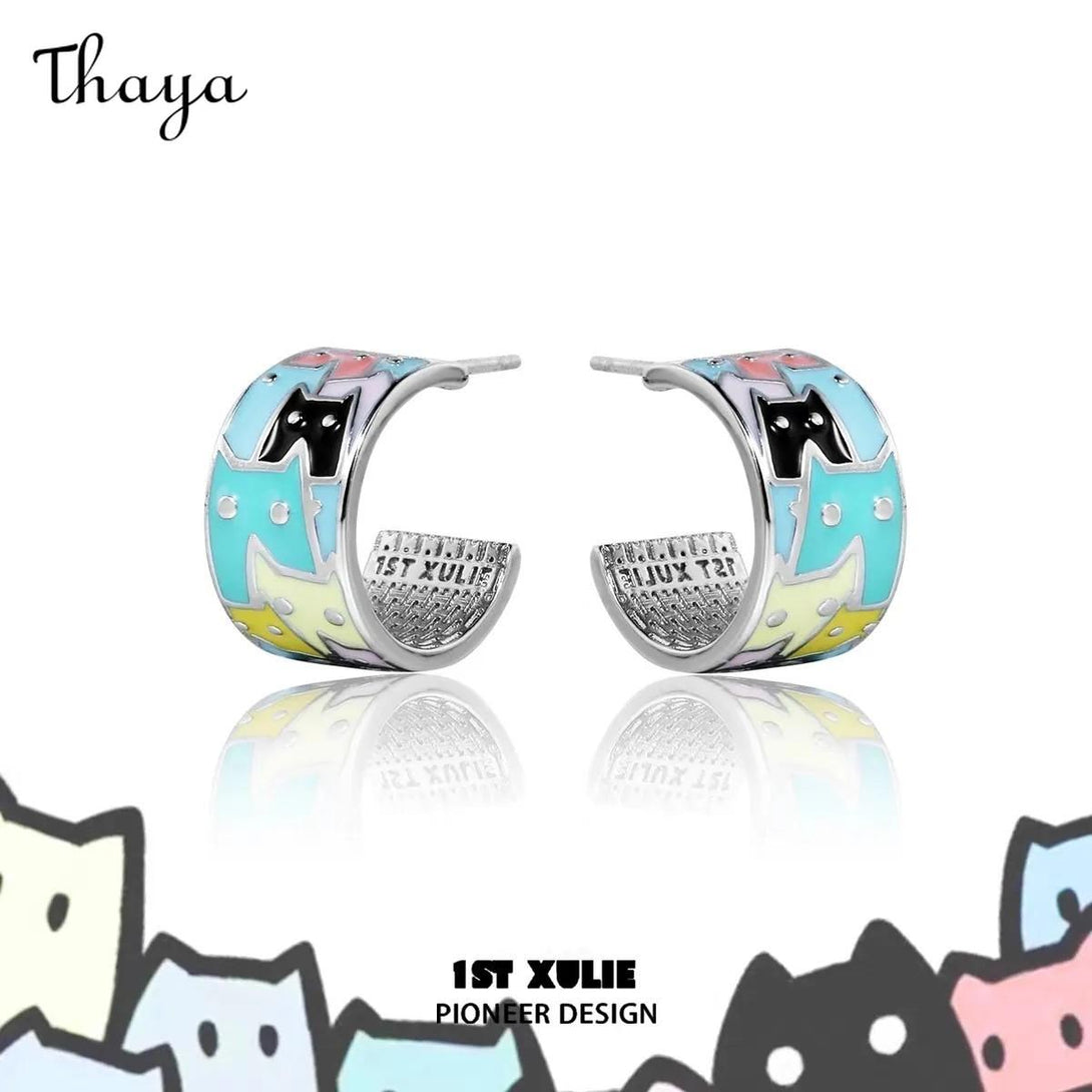 Add a whimsical touch to your style with these adorable cat design hoop earrings! These earrings feature a colorful, playful design that's sure to catch the eye. The hoop shape provides a comfortable and stylish fit.