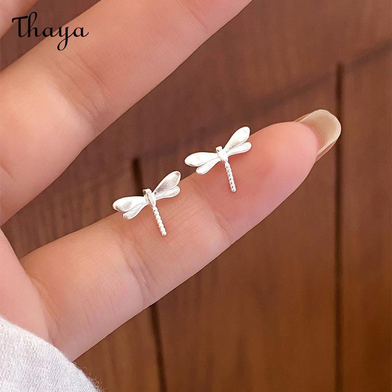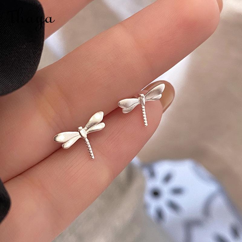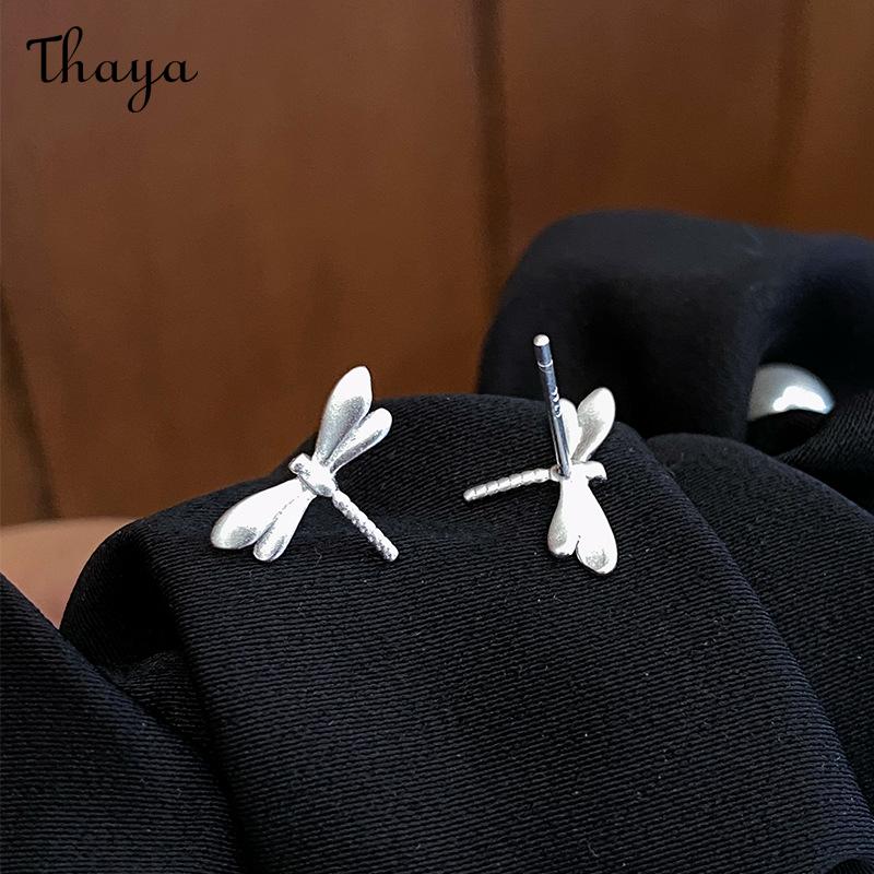 Thaya S925 Silver Brushed Frosted Dragonfly Stud Earrings