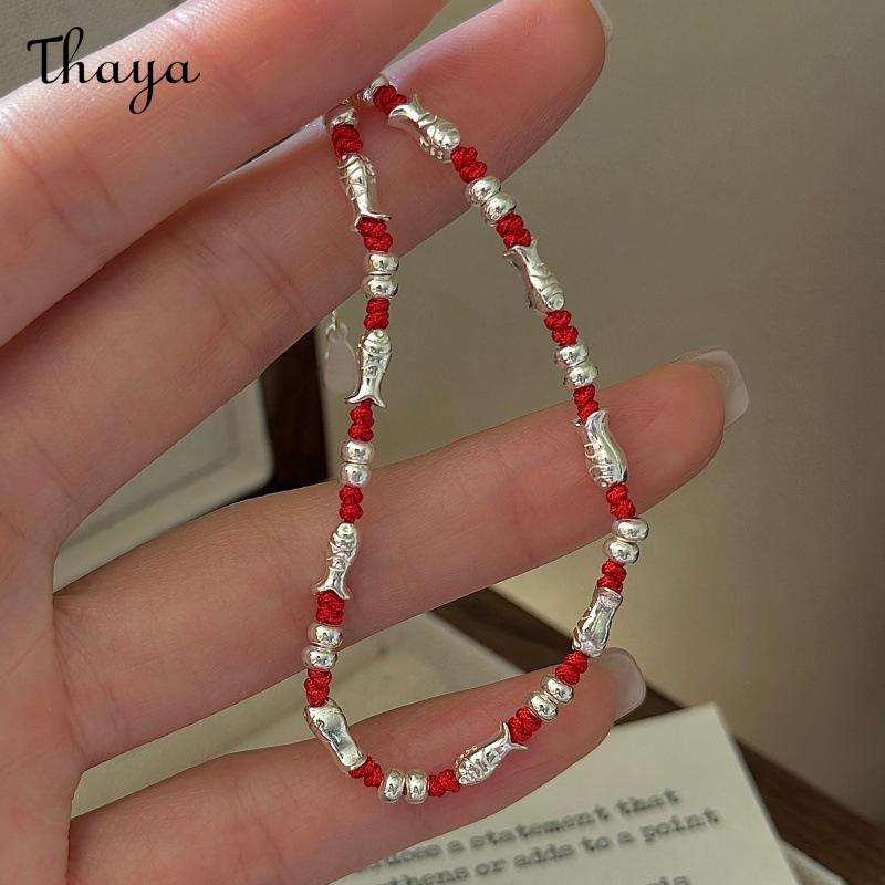 • Design: The bracelet showcases charming little fish charms interspersed with silver beads, all strung on a vibrant red cord.