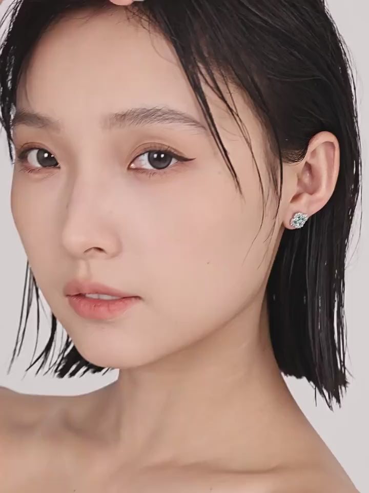These delicate earrings feature a four-leaf clover design, perfect for adding a touch of luck and elegance to your look. Each 'leaf' of the clover is adorned with a light blue zircon.