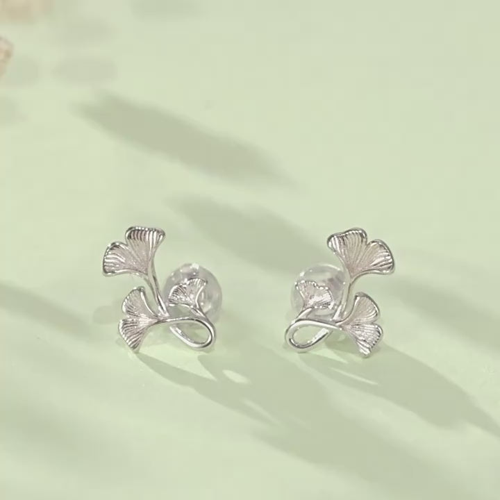Thaya 925 Silver Brushed Ginkgo Leaf Earrings